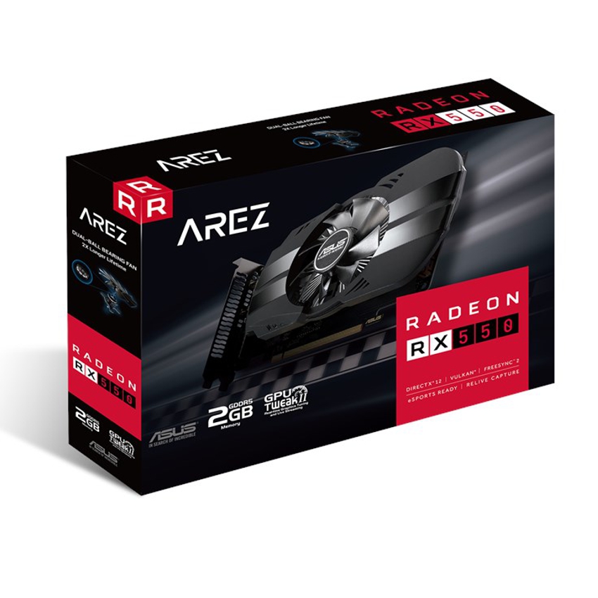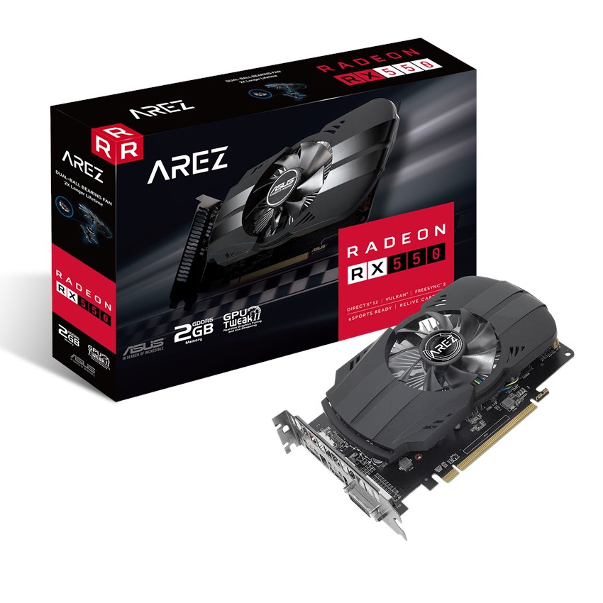 Descripción ASUS AREZ-PH-RX550-2G. Familia de procesadores de gráficos: AMD, Procesador gráfico: Radeon RX 550, Frecuencia del procesador: 1071 MHz. Capacidad memoria de adaptador gráfico: 2 GB, Tipo de memoria de adaptador gráfico: GDDR5, Ancho de datos: 128 bit, Velocidad de memoria del reloj: 6000 MHz. Máxima resolución: 5120 x 2880 Pixeles. Versión DirectX: 12.0. Tipo de interfaz: PCI Express x16 3.0. Tipo de enfriamiento: Activo, Número de ventiladores: 1 Ventilador(es)