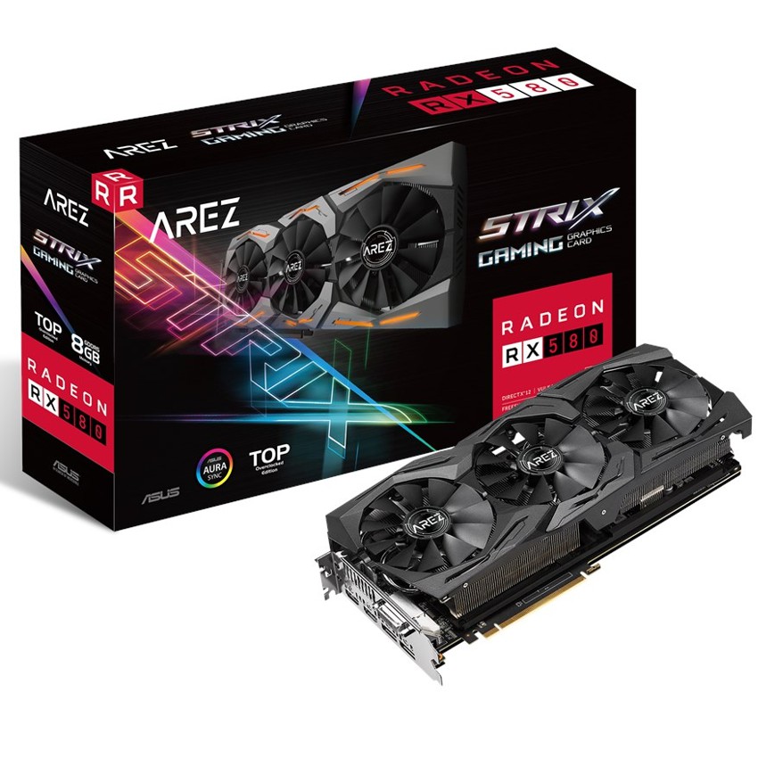 Descripción ASUS AREZ-STRIX-RX580-T8G-GAMING. Familia de procesadores de gráficos: AMD, Procesador gráfico: Radeon RX 580, Frecuencia del procesador: 1411 MHz. Capacidad memoria de adaptador gráfico: 8 GB, Tipo de memoria de adaptador gráfico: GDDR5, Ancho de datos: 256 bit. Máxima resolución: 7680 x 4320 Pixeles. Versión OpenGL: 4.5. Tipo de interfaz: PCI Express x16. Tipo de enfriamiento: Activo, Número de ventiladores: 3 Ventilador(es), Iluminación de color: Multi