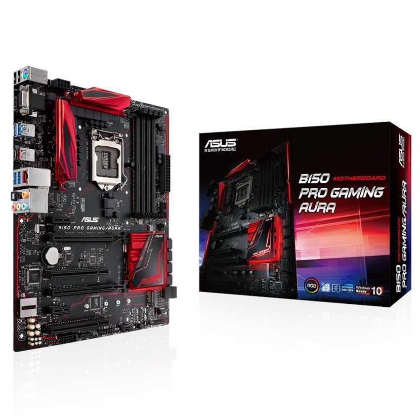 Descripción ASUS B150 PRO GAMING/AURA. tipos de memoria compatibles: DDR4-SDRAM, Tipo de ranuras de memoria: DIMM, Canales de memoria: Dual. Familia de procesador: Intel, Procesador compatible: Celeron, Core i3, Core i5, Core i7, Pentium, Socket de procesador: LGA1151. Interfaces de unidad de disco duro soportadas: M.2, Serial ATA III. Tipo de interfaz ethernet: Rápido, Gigabit. Componente para: PC, Familia de componentes de tarjeta madre: Intel, Circuito integrado de tarjeta madre: Intel B150