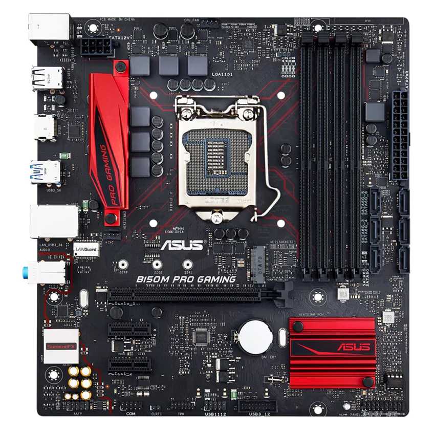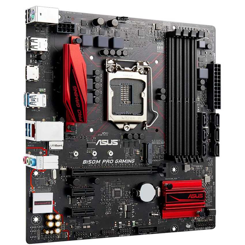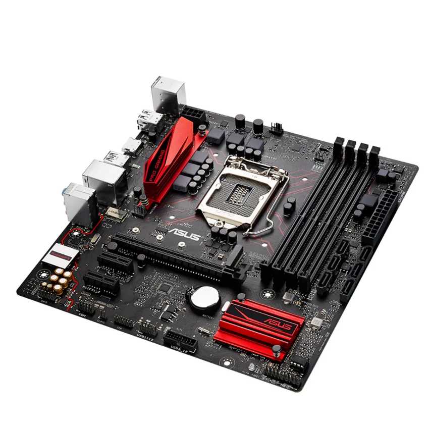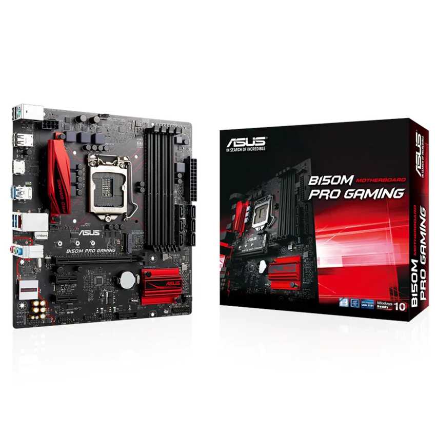 Descripción ASUS B150M PRO GAMING. tipos de memoria compatibles: DDR4-SDRAM, Tipo de ranuras de memoria: DIMM, Canales de memoria: Dual. Familia de procesador: Intel, Procesador compatible: Core i5, Core i7, Pentium, Socket de procesador: LGA1151. Interfaces de unidad de disco duro soportadas: M.2, Serial ATA III. Controlador LAN: Intel I219-V. Componente para: PC, Familia de componentes de tarjeta madre: Intel, Circuito integrado de tarjeta madre: Intel B150