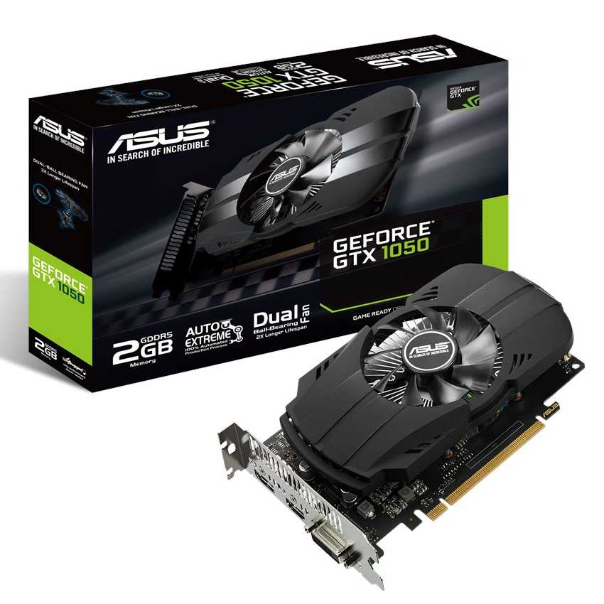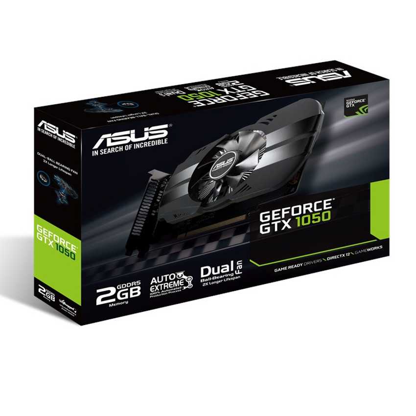 Descripción ASUS PH-GTX1050-2G. Familia de procesadores de gráficos: NVIDIA, Procesador gráfico: GeForce GTX 1050, Máxima resolución: 7680 x 4320 Pixeles. Gráficos discretos memoria del adaptador: 2 GB, Tipo de memoria de adaptador gráfico: GDDR5, Ancho de datos: 128 bit. Tipo de interfaz: PCI Express 3.0, Versión HDMI: 2.0, Versión de DisplayPort: 1.4. Versión OpenGL: 4.5. Tipo de enfriamiento: Activo, Color del producto: Negro