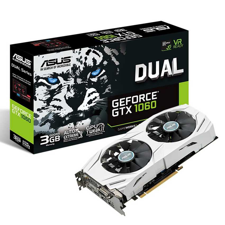 Descripción ASUS DUAL-GTX1060-3G. Familia de procesadores de gráficos: NVIDIA, Procesador gráfico: GeForce GTX 1060, Máxima resolución: 7680 x 4320 Pixeles. Gráficos discretos memoria del adaptador: 3 GB, Tipo de memoria de adaptador gráfico: GDDR5, Ancho de datos: 192 bit. Tipo de interfaz: PCI Express 3.0, Versión HDMI: 2.0. Versión OpenGL: 4.5. Tipo de enfriamiento: Activo