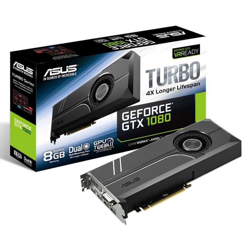 Descripción ASUS TURBO-GTX1080-8G. Familia de procesadores de gráficos: NVIDIA, Procesador gráfico: GeForce GTX 1080, Máxima resolución: 7680 x 4320 Pixeles. Gráficos discretos memoria del adaptador: 8 GB, Tipo de memoria de adaptador gráfico: GDDR5X SGRAM, Ancho de datos: 256 bit. Tipo de interfaz: PCI Express 3.0, Versión HDMI: 2.0. Versión OpenGL: 4.5. Tipo de enfriamiento: Activo