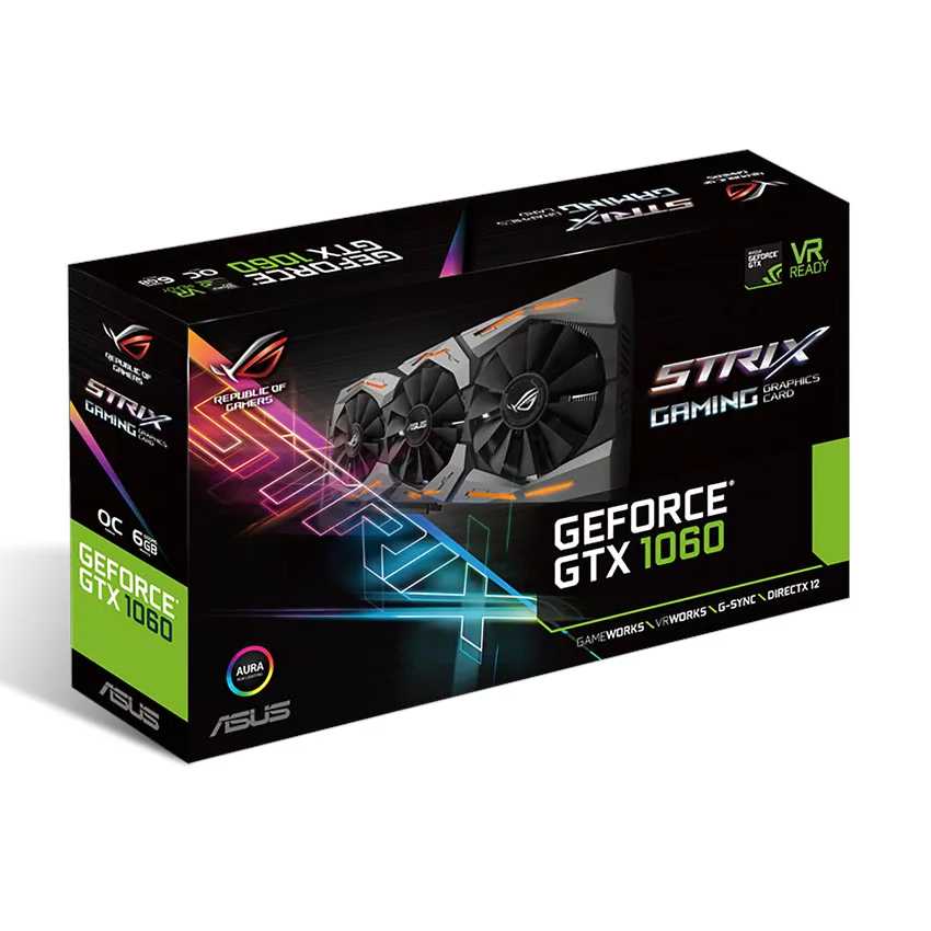 Descripción ASUS ROG STRIX-GTX1060-O6G-GAMING. Familia de procesadores de gráficos: NVIDIA, Procesador gráfico: GeForce GTX 1060, Máxima resolución: 7680 x 4320 Pixeles. Gráficos discretos memoria del adaptador: 6 GB, Tipo de memoria de adaptador gráfico: GDDR5, Ancho de datos: 192 bit. Tipo de interfaz: PCI Express x16 3.0, Versión HDMI: 2.0, Versión de DisplayPort: 1.4. Versión DirectX: 12.0, Versión Shader model: 5.0, Versión OpenGL: 4.5. Tipo de enfriamiento: Activo, Factor de forma: ATX, Color del producto: Negro