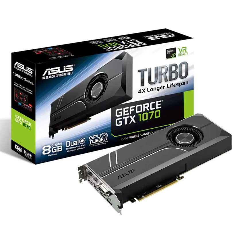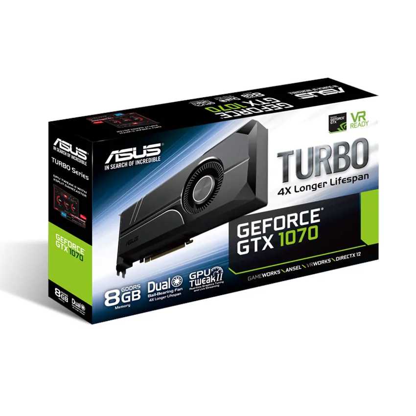 Descripción ASUS TURBO-GTX1070-8G. Familia de procesadores de gráficos: NVIDIA, Procesador gráfico: GeForce GTX 1070, Máxima resolución: 7680 x 4320 Pixeles. Gráficos discretos memoria del adaptador: 8 GB, Tipo de memoria de adaptador gráfico: GDDR5, Ancho de datos: 256 bit. Tipo de interfaz: PCI Express 3.0, Versión HDMI: 2.0. Versión OpenGL: 4.5. Tipo de enfriamiento: Activo, Color del producto: Negro