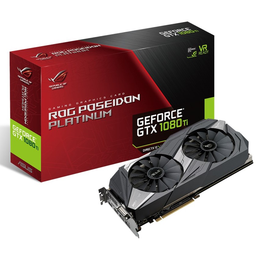 Descripción ASUS ROG-POSEIDON-GTX1080TI-P11G-GAMING. Familia de procesadores de gráficos: NVIDIA, Procesador gráfico: GeForce GTX 1080 TI, Máxima resolución: 7680 x 4320 Pixeles. Gráficos discretos memoria del adaptador: 11 GB, Tipo de memoria de adaptador gráfico: GDDR5X, Ancho de datos: 352 bit. Tipo de interfaz: PCI Express 3.0. Tipo de enfriamiento: Activo, Número de ventiladores: 2 fan(s), Iluminación de color: Multi. Conectores de energia suplementario: 2x 8-pin