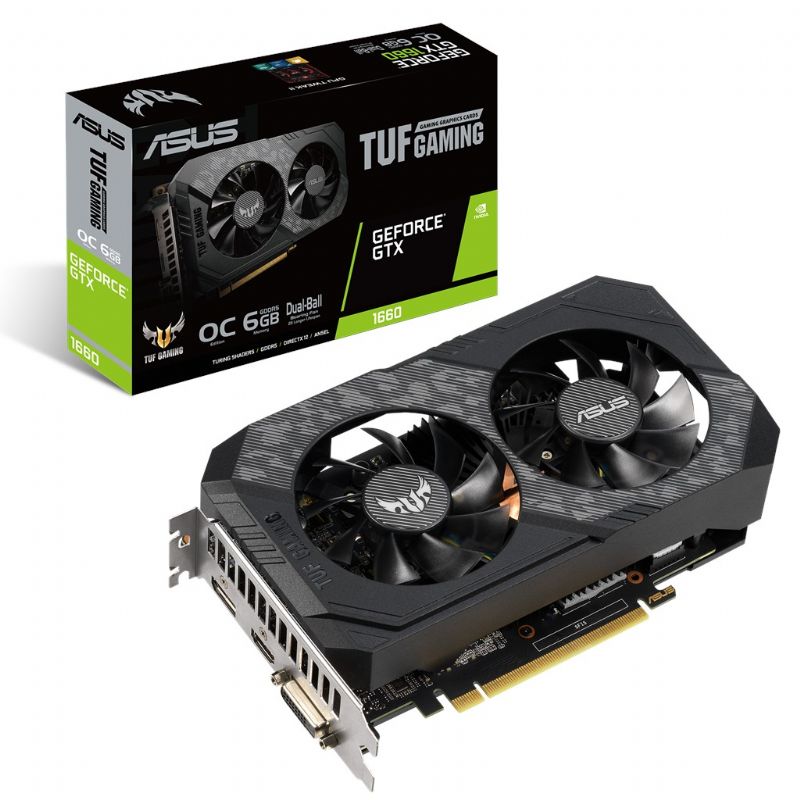 Descripción ASUS TUF3-GTX1660-O6G-GAMING. Familia de procesadores de gráficos: NVIDIA, Procesador gráfico: GeForce GTX 1660, Frecuencia del procesador: 1500 MHz. Capacidad memoria de adaptador gráfico: 6 GB, Tipo de memoria de adaptador gráfico: GDDR5, Ancho de datos: 192 bit, Velocidad de memoria del reloj: 8002 MHz. Máxima resolución: 7680 x 4320 Pixeles. Versión DirectX: 12.0, Versión OpenGL: 4.6. Tipo de interfaz: PCI Express x16 3.0. Tipo de enfriamiento: Activo, Número de ventiladores: 3 Ventilador(es)