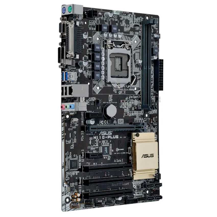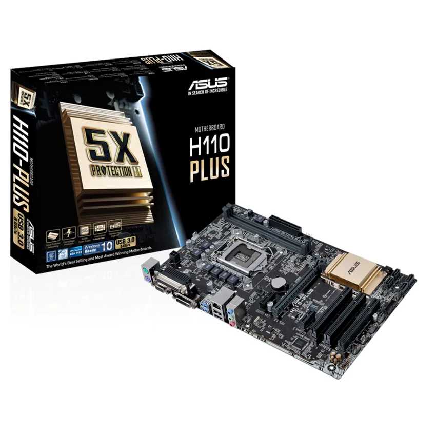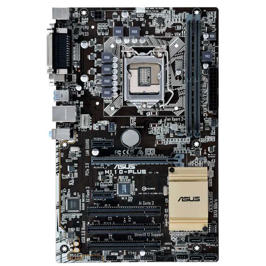 Descripción ASUS H110-PLUS. tipos de memoria compatibles: DDR4-SDRAM, Tipo de ranuras de memoria: DIMM, Canales de memoria: Dual. Familia de procesador: Intel, Procesador compatible: Celeron, Core i5, Core i7, Pentium, Socket de procesador: LGA1151. Interfaces de unidad de disco duro soportadas: Serial ATA III. Controlador LAN: Realtek RTL8111H. Componente para: PC, Familia de componentes de tarjeta madre: Intel, Circuito integrado de tarjeta madre: Intel H110