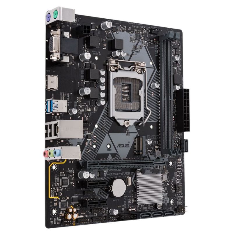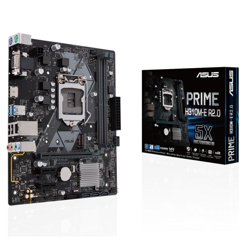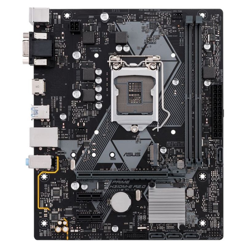 Descripción ASUS Prime H310M-E R2.0. Fabricante de procesador: Intel, Socket de procesador: LGA 1151 (Zócalo H4), Procesador compatible: Intel® Celeron®, Intel® Core™ i3, Intel Core i5, Intel Core i7, Intel® Pentium®. tipos de memoria compatibles: DDR4-SDRAM, Tipo de ranuras de memoria: DIMM, Velocidades de reloj de memoria soportadas: 2133,2400,2666 MHz. Interfaces de disco de almacenamiento soportados: Serial ATA III. Memoria máxima de adaptador de gráficos: 1024 MB, Graphics chipset: Intel, Adaptador gráfico: HD Graphics. Versión HDMI: 1.4b