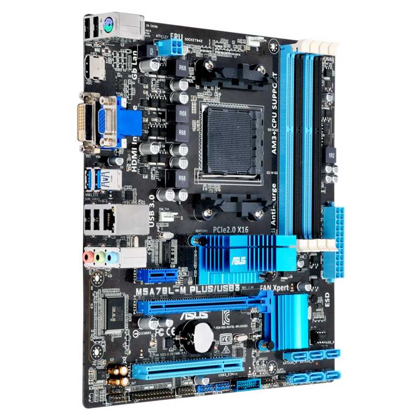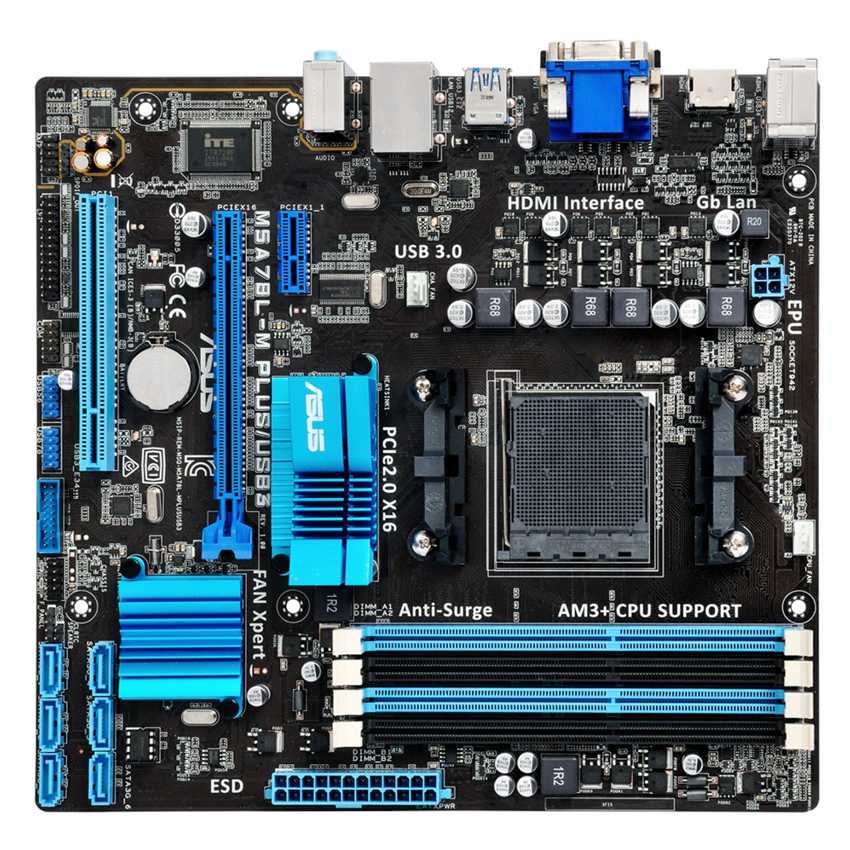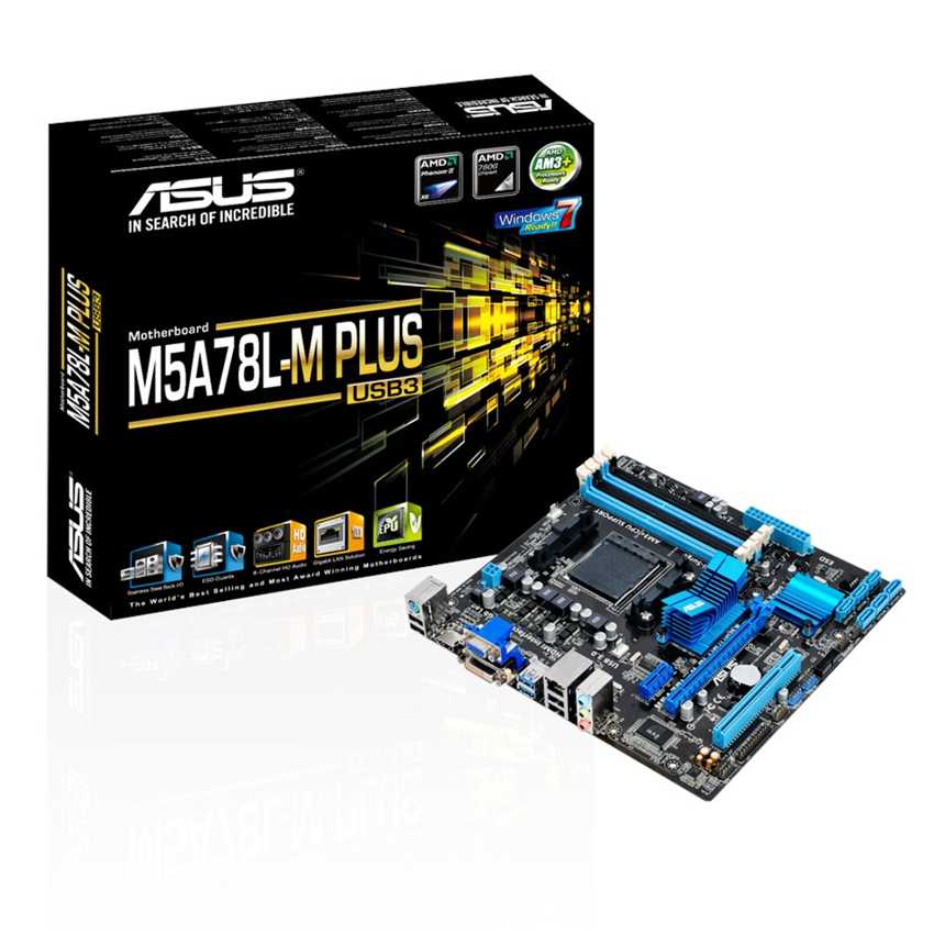Descripción ASUS M5A78L-M PLUS/USB3. tipos de memoria compatibles: DDR3-SDRAM, Tipo de ranuras de memoria: DIMM, Canales de memoria: Dual. Familia de procesador: AMD, Procesador compatible: Athlon II, Phenom, Sempron, Socket de procesador: Socket AM3+. Interfaces de disco de almacenamiento soportados: Serial ATA II. Conector USB: USB Type-A. Controlador LAN: Realtek RTL8111H, Tipo de interfaz ethernet: Gigabit Ethernet
