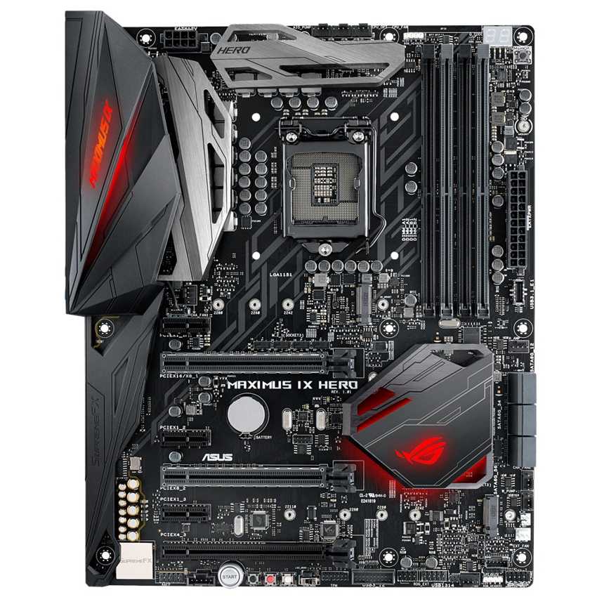 Descripción ASUS MAXIMUS IX HERO. tipos de memoria compatibles: DDR4-SDRAM, Tipo de ranuras de memoria: DIMM, Memoria interna: 64 GB. Familia de procesador: Intel, Procesador compatible: Celeron, Core i3, Core i5, Core i7, Pentium, Socket de procesador: LGA1151. Controlador LAN: Intel I219-V, Versión de Bluetooth: 4.1. Componente para: PC, Familia de componentes de tarjeta madre: Intel, Circuito integrado de tarjeta madre: Intel Z270. Soporte para proceso paralelo: 2-Way SLI, 3-Way CrossFireX