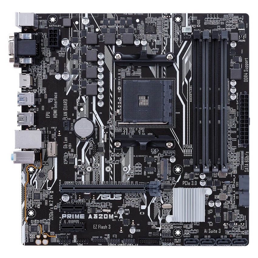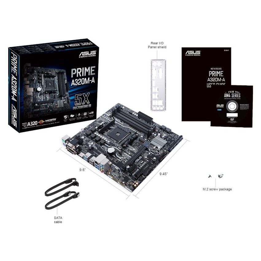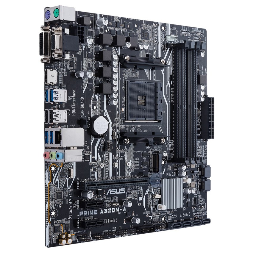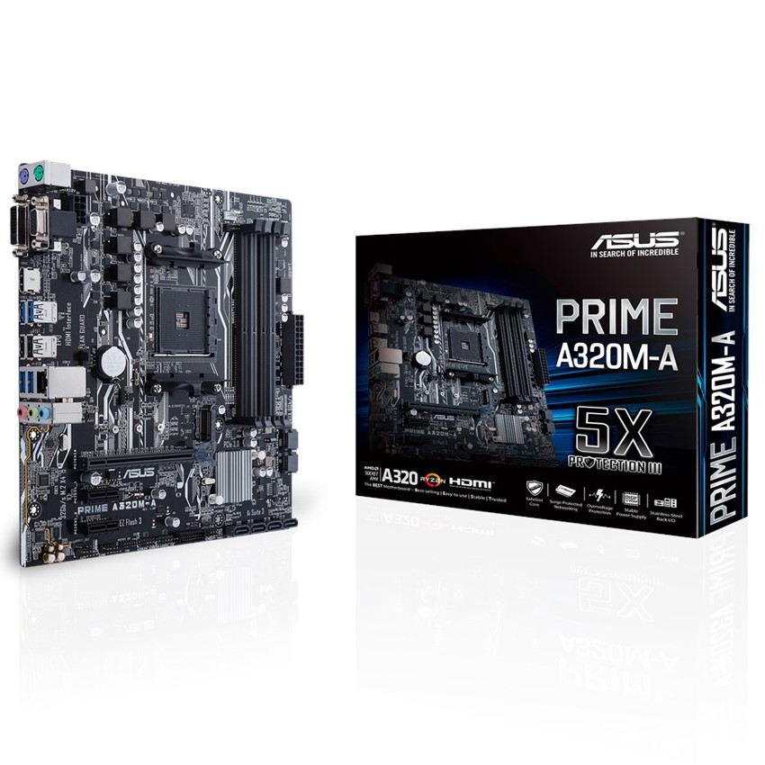 Descripción ASUS PRIME A320M-A. tipos de memoria compatibles: DDR4-SDRAM, Tipo de ranuras de memoria: DIMM, Velocidades de reloj de memoria soportadas: 2133,2400,2666,2933,3200 MHz. Familia de procesador: AMD, Procesador compatible: AMD A,Athlon,Ryzen, Socket de procesador: Socket AM4. Controlador LAN: Realtek RTL8111H, Tipo de interfaz ethernet: Gigabit Ethernet. Componente para: PC, Familia de componentes de tarjeta madre: AMD, Circuito integrado de tarjeta madre: AMD A320. Memoria máxima de adaptador de gráficos: 2048 MB, Máxima resolución: 4096 x 2160 Pixeles