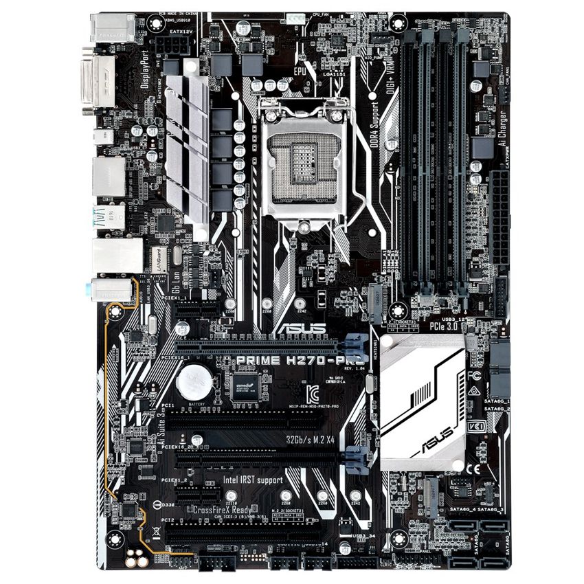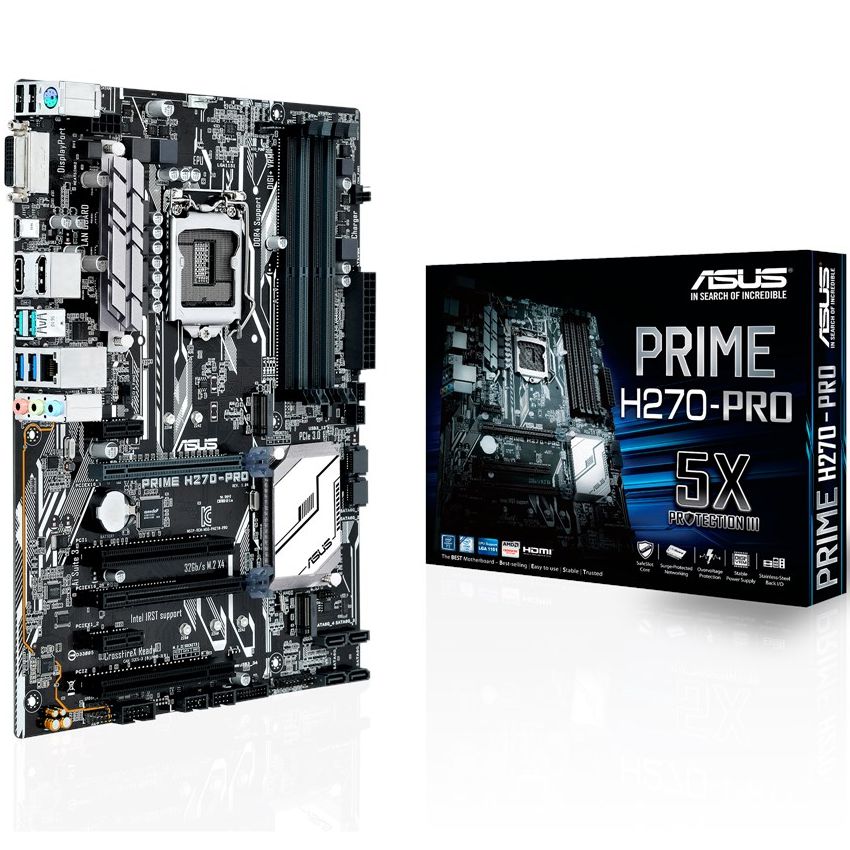 Descripción ASUS PRIME H270-PRO. tipos de memoria compatibles: DDR4-SDRAM, Tipo de ranuras de memoria: DIMM, Canales de memoria: Dual. Familia de procesador: Intel, Procesador compatible: Celeron, Core i3, Core i5, Pentium, Socket de procesador: LGA1151. Controlador LAN: Intel I219-V, Tipo de interfaz ethernet: Gigabit Ethernet. Componente para: PC, Familia de componentes de tarjeta madre: Intel, Circuito integrado de tarjeta madre: Intel H270. Tipos de BIOS: UEFI AMI