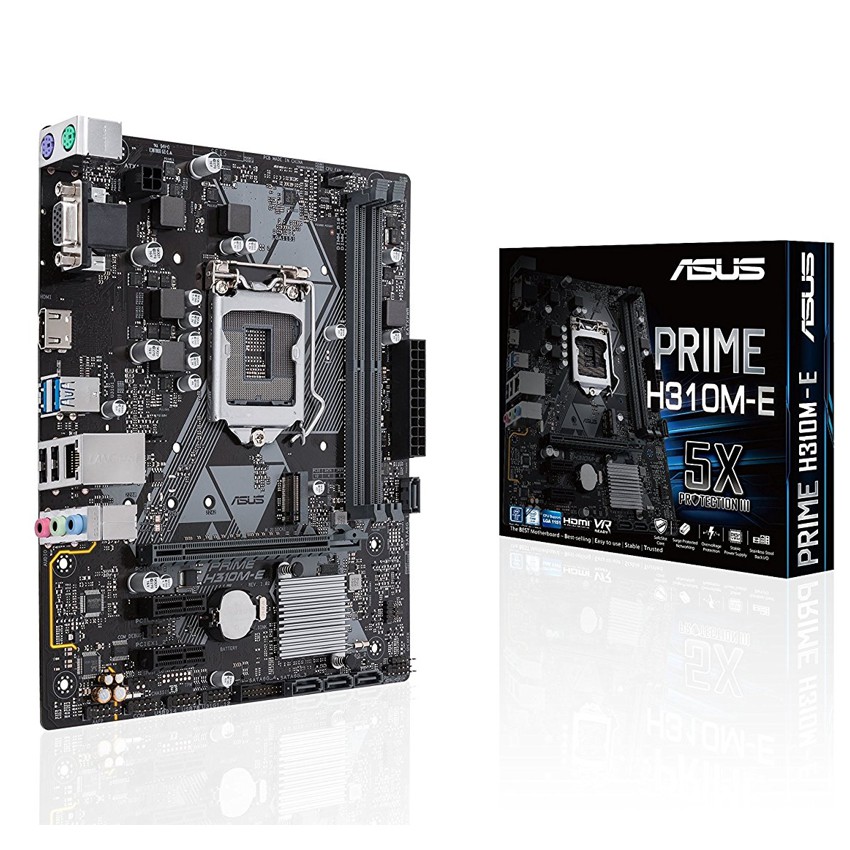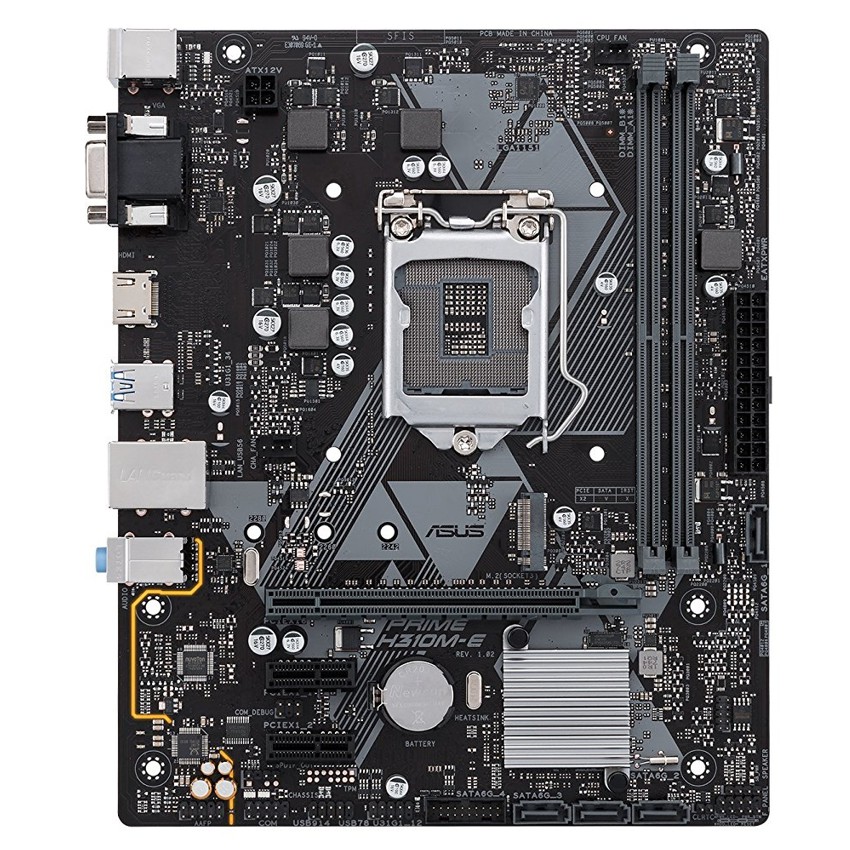 Descripción ASUS PRIME H310M-E. tipos de memoria compatibles: DDR4-SDRAM, Tipo de ranuras de memoria: DIMM, Velocidades de reloj de memoria soportadas: 2133,2400,2666 MHz. Fabricante de procesador: Intel, Procesador compatible: Intel® Celeron®, Intel Core i3, Intel Core i5, Intel Core i7, Intel® Pentium®, Socket de procesador: LGA 1151 (Socket H4). Interfaces de disco de almacenamiento soportados: M.2, Serial ATA III. Controlador LAN: Realtek RTL8111H, Tipo de interfaz ethernet: Gigabit Ethernet. Componente para: PC, Familia de componentes de tarjeta madre: Intel, Circuito integrado de tarjeta madre: Intel H310