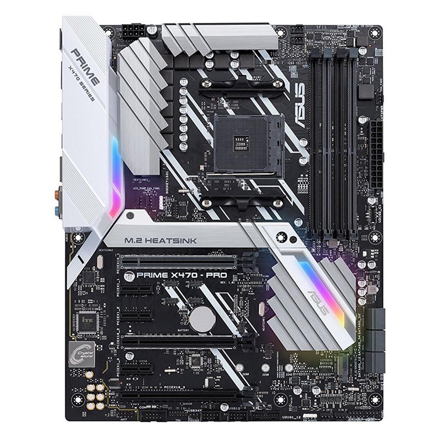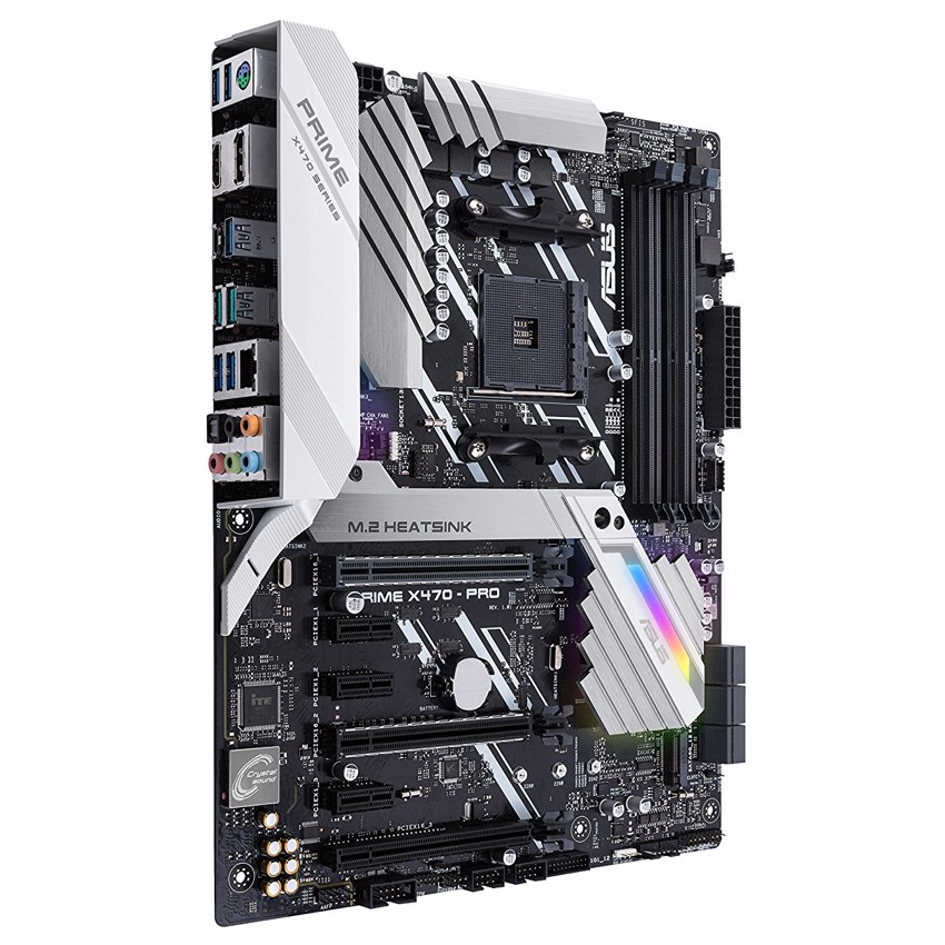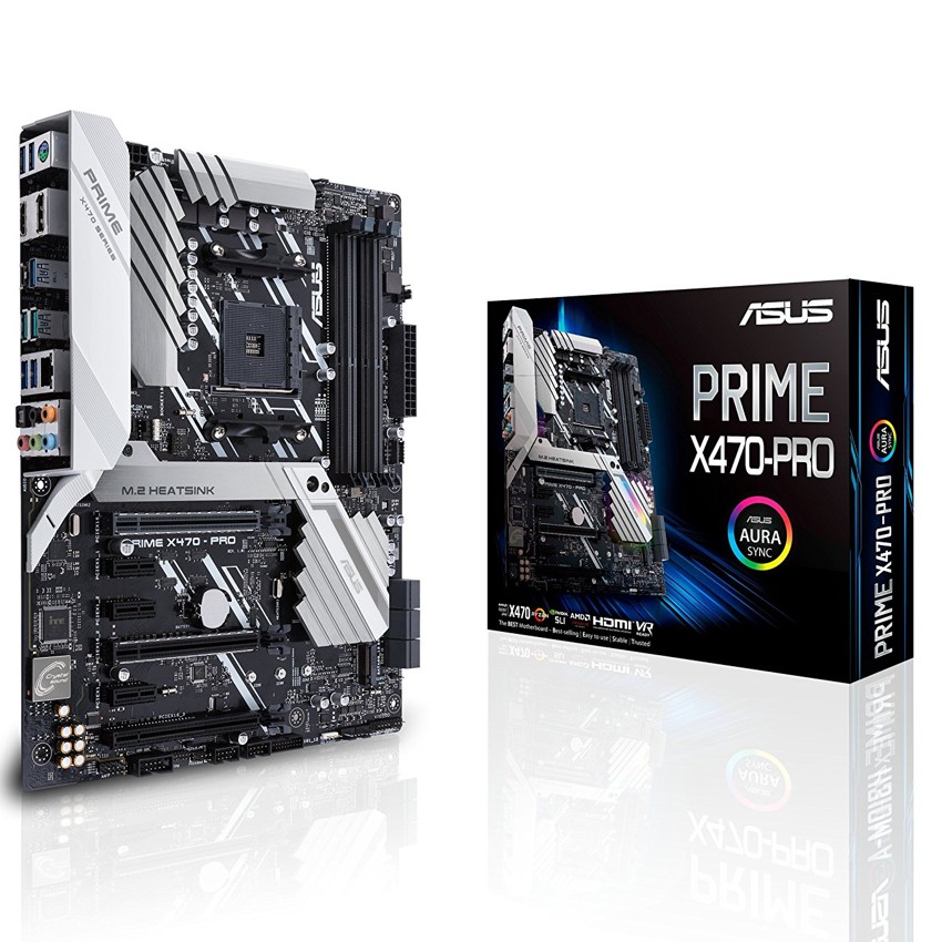 Descripción ASUS PRIME X470-PRO. tipos de memoria compatibles: DDR4-SDRAM, Tipo de ranuras de memoria: DIMM, Velocidades de reloj de memoria soportadas: 2133,2400,2666,2800,2933,3000,3200,3466 MHz. Fabricante de procesador: AMD, Procesador compatible: AMD A,AMD Athlon X4,AMD Ryzen, Socket de procesador: Socket AM4. Controlador LAN: Intel I211-AT. Componente para: PC, Familia de componentes de tarjeta madre: AMD, Circuito integrado de tarjeta madre: AMD X470. Memoria máxima de adaptador de gráficos: 2048 MB, Soporte para proceso paralelo: 2-Way SLI,CrossFireX, Graphics chipset: AMD