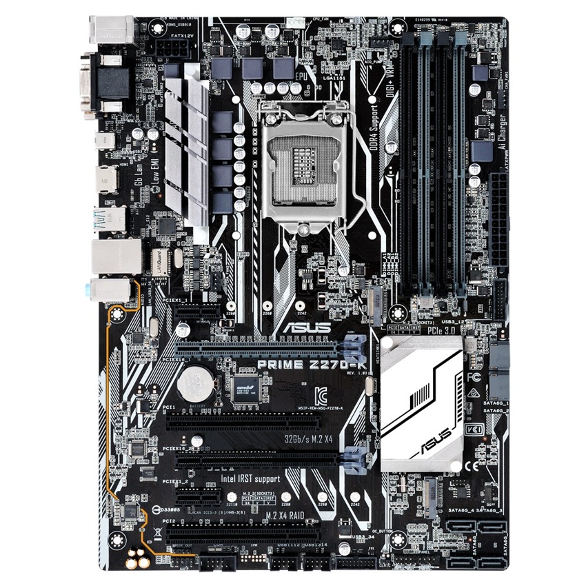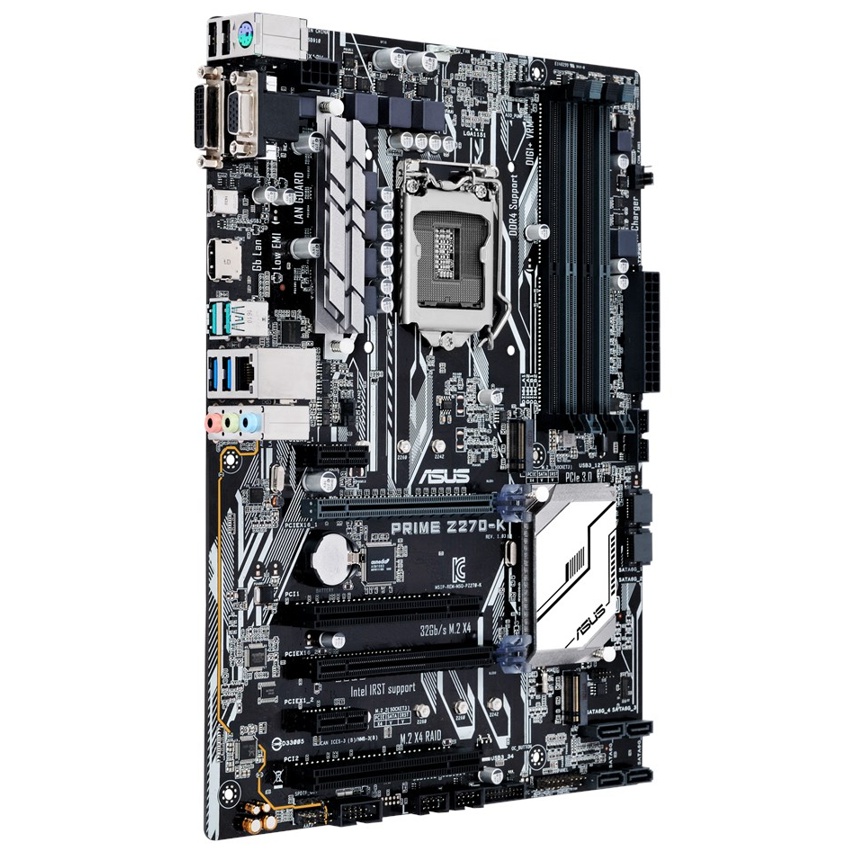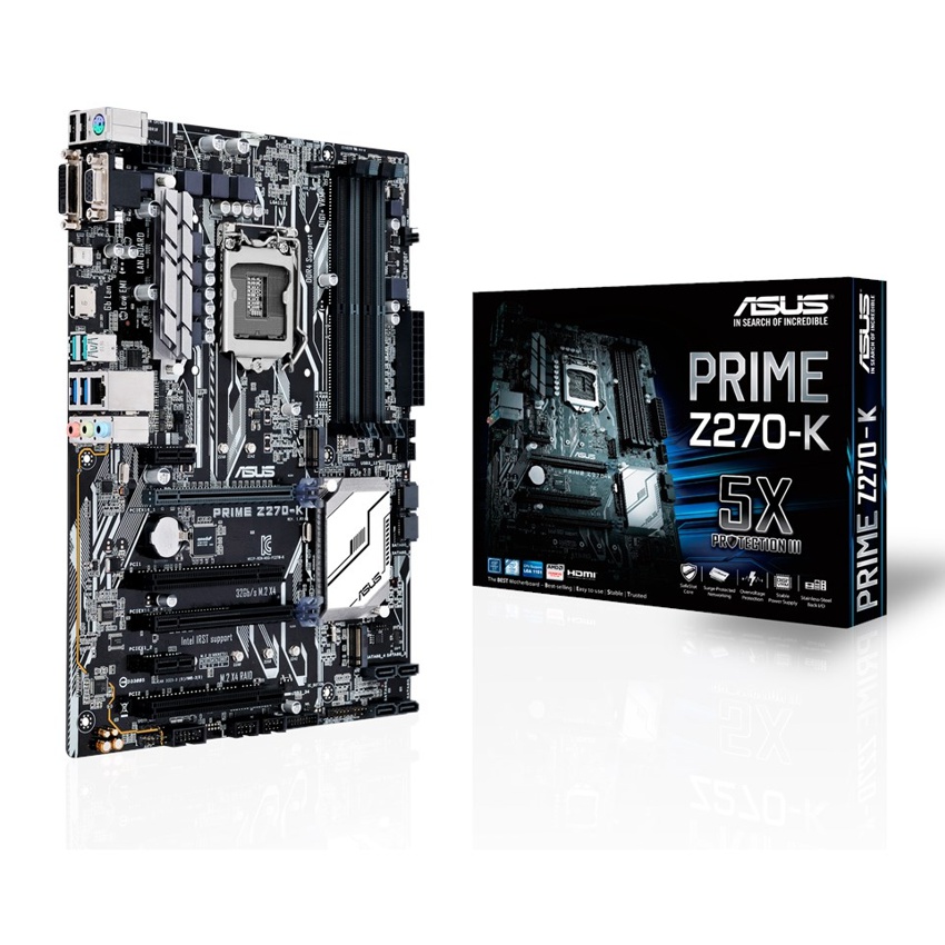 Descripción ASUS PRIME Z270-K. tipos de memoria compatibles: DDR4-SDRAM, Tipo de ranuras de memoria: DIMM, Canales de memoria: Dual. Familia de procesador: Intel, Procesador compatible: Celeron,Core i3,Core i5,Core i7,Pentium, Socket de procesador: LGA1151. Controlador LAN: Intel I219-V, Tipo de interfaz ethernet: Gigabit Ethernet. Componente para: PC, Familia de componentes de tarjeta madre: Intel, Circuito integrado de tarjeta madre: Intel Z270. Graphics chipset: Intel
