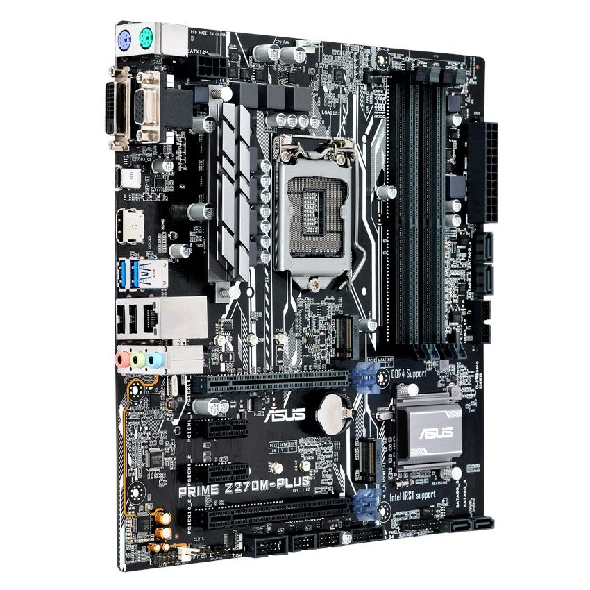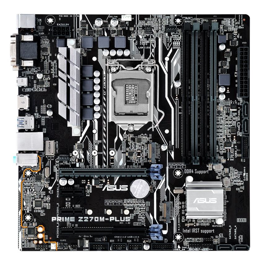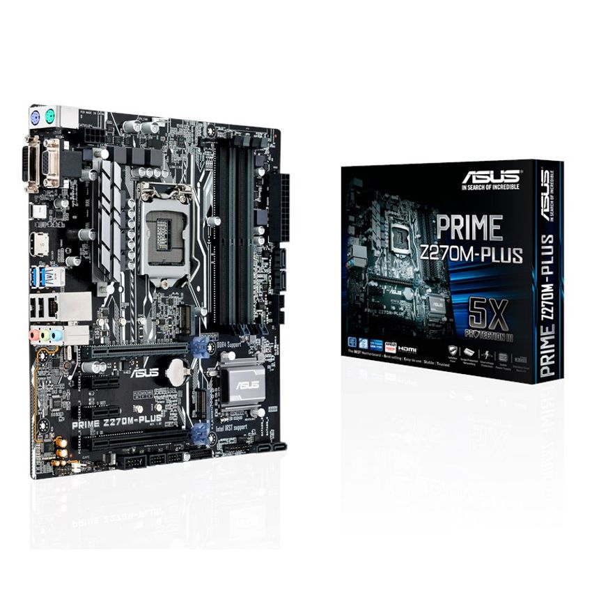 Descripción ASUS PRIME Z270M-PLUS. tipos de memoria compatibles: DDR4-SDRAM, Tipo de ranuras de memoria: DIMM, Canales de memoria: Dual. Familia de procesador: Intel, Procesador compatible: Celeron, Core i3, Core i5, Core i7, Pentium, Socket de procesador: LGA1151. Controlador LAN: Intel I219-V, Tipo de interfaz ethernet: Gigabit Ethernet. Componente para: PC, Familia de componentes de tarjeta madre: Intel, Circuito integrado de tarjeta madre: Intel Z270. Graphics chipset: Intel