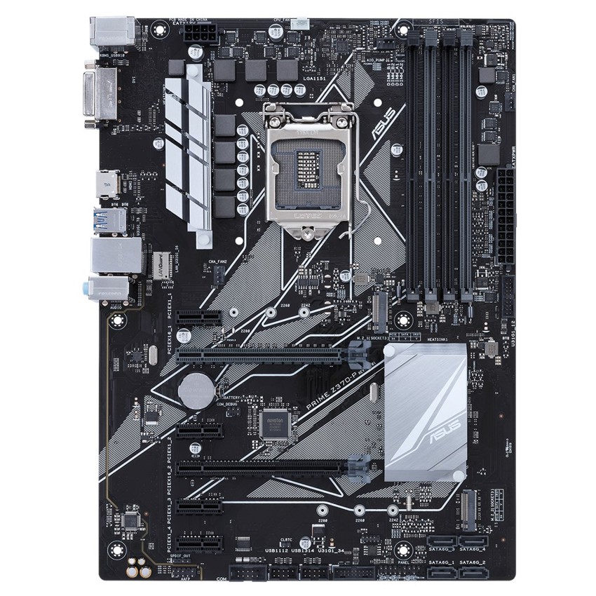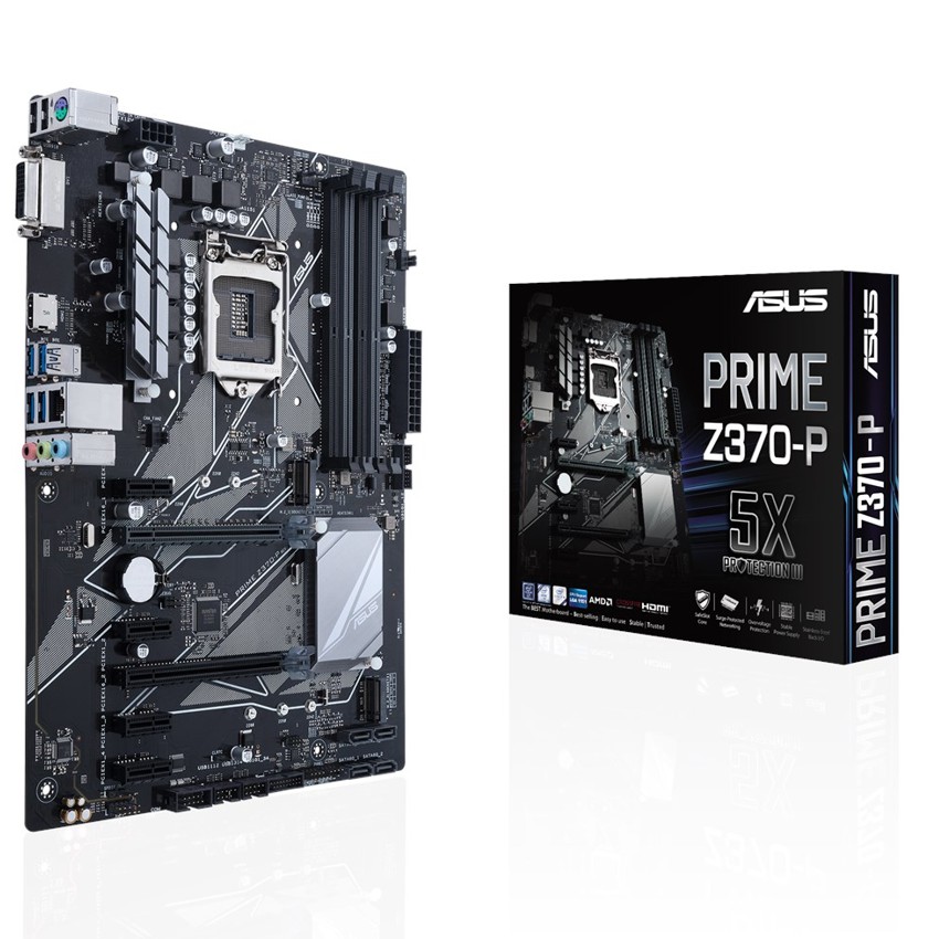 Descripción ASUS PRIME Z370-P. tipos de memoria compatibles: DDR4-SDRAM, Tipo de ranuras de memoria: DIMM, Velocidades de reloj de memoria soportadas: 2133,4000 MHz. Familia de procesador: Intel, Procesador compatible: Core i3,Core i5,Core i7, Socket de procesador: LGA 1151 (Socket H4). Interfaces de disco de almacenamiento soportados: M.2, Serial ATA III. Controlador LAN: Realtek RTL8111H, Tipo de interfaz ethernet: Gigabit Ethernet. Componente para: PC, Familia de componentes de tarjeta madre: Intel, Tarjeta madre, factor de forma: ATX
