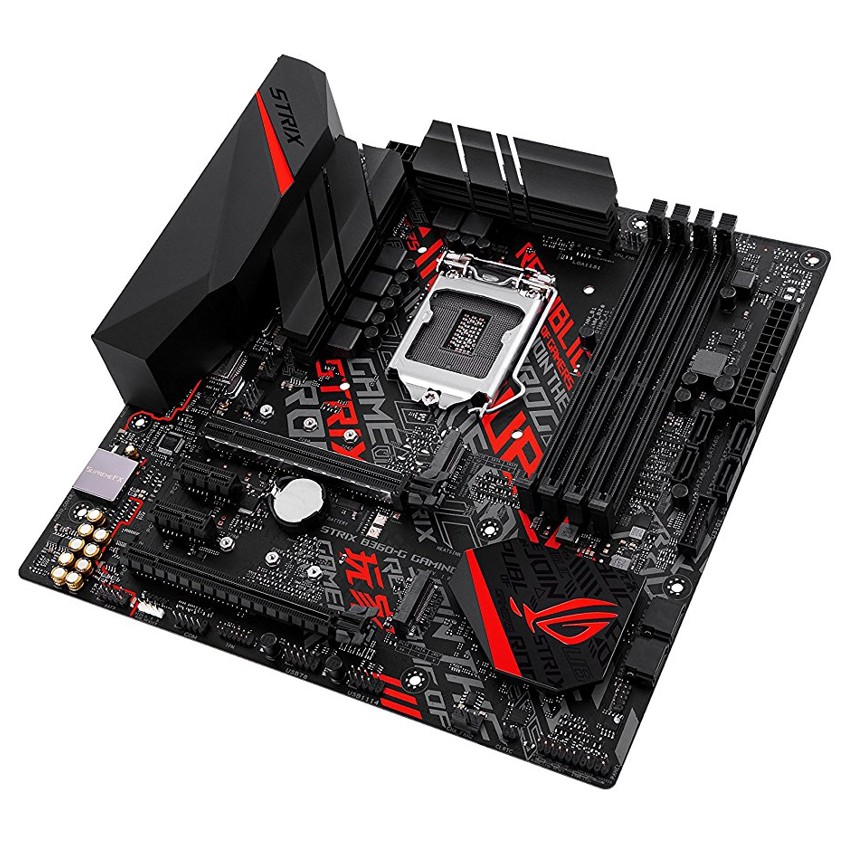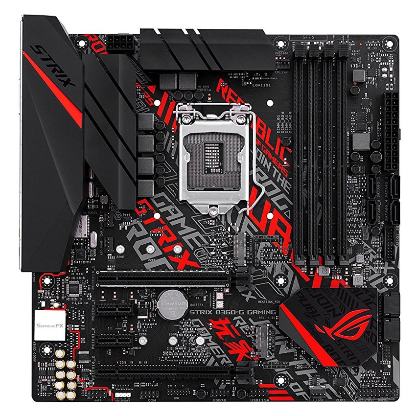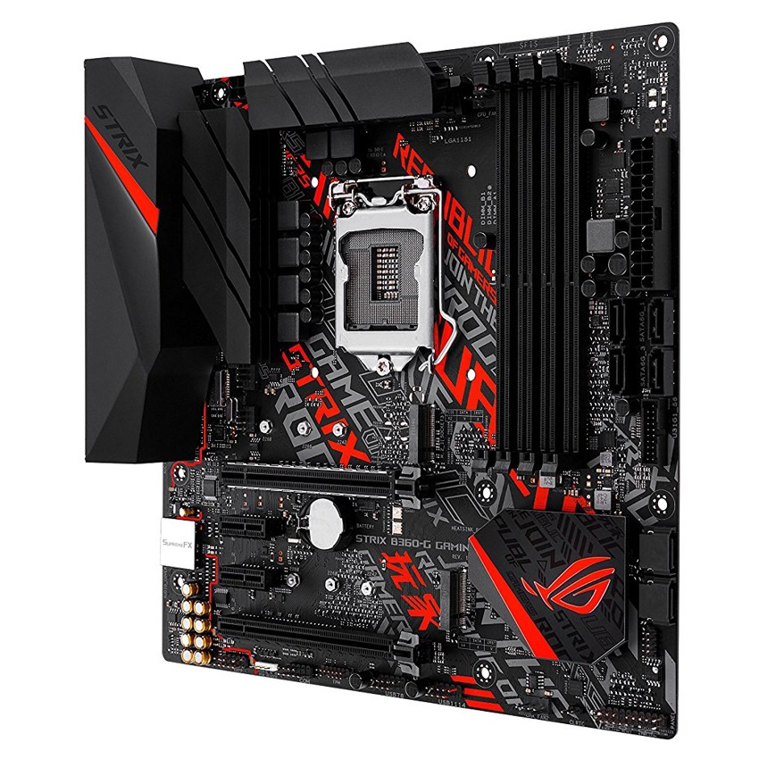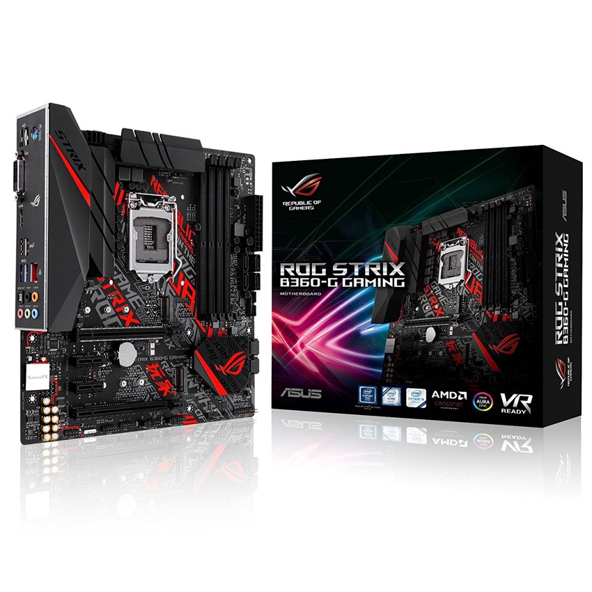 Descripción ASUS ROG STRIX B360-G GAMING. tipos de memoria compatibles: DDR4-SDRAM, Tipo de ranuras de memoria: DIMM, Velocidades de reloj de memoria soportadas: 2133,2400,2666 MHz. Fabricante de procesador: Intel, Procesador compatible: Intel Core i3,Intel Core i5,Intel Core i7. Controlador LAN: Intel I219-V, Tipo de interfaz ethernet: Gigabit Ethernet. Componente para: PC, Familia de componentes de tarjeta madre: Intel, Circuito integrado de tarjeta madre: Intel B360. Soporte para proceso paralelo: 2-Way CrossFireX, Adaptador gráfico: HD Graphics, Máxima resolución: 4096 x 2160 Pixeles