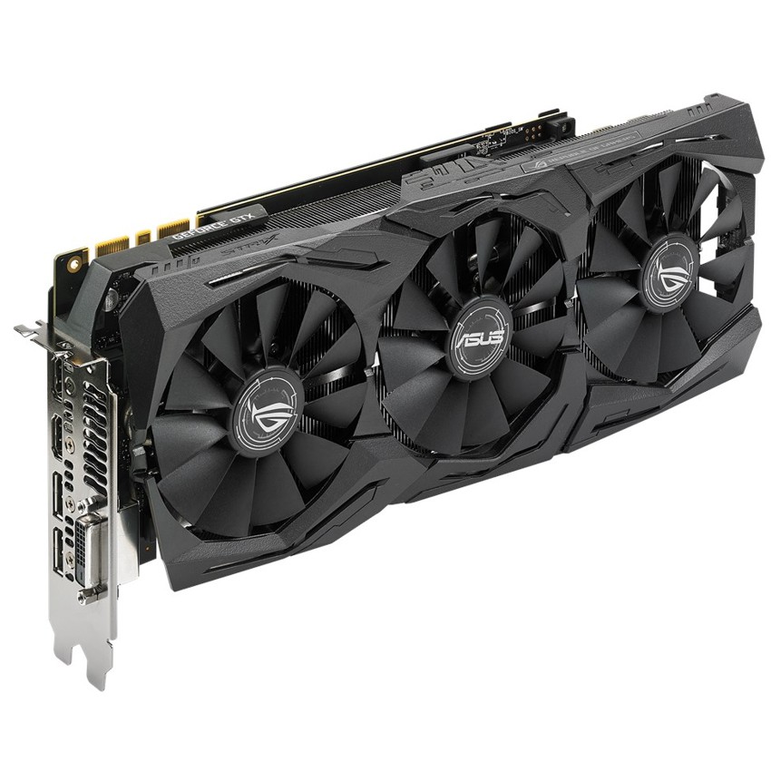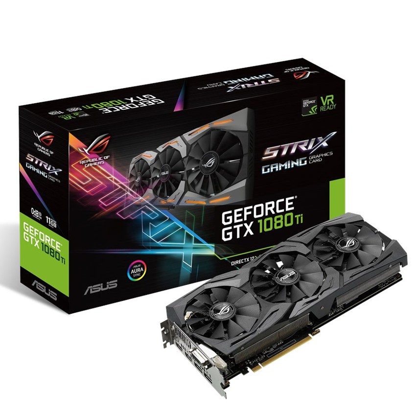 Descripción ASUS ROG-STRIX-GTX1080TI-11G-GAMING. Familia de procesadores de gráficos: NVIDIA, Procesador gráfico: GeForce GTX 1080 Ti, Máxima resolución: 7680 x 4320 Pixeles. Gráficos discretos memoria del adaptador: 11 GB, Tipo de memoria de adaptador gráfico: GDDR5X, Ancho de datos: 352 bit. Tipo de interfaz: PCI Express 3.0. Tipo de enfriamiento: Activo. Suministro de energía al sistema mínimo: 600 W, Consumo energético: 250 W, Conectores de energia suplementario: 2x 8-pin