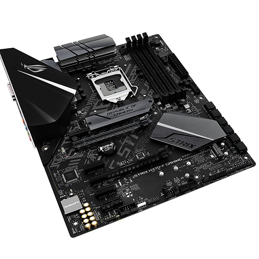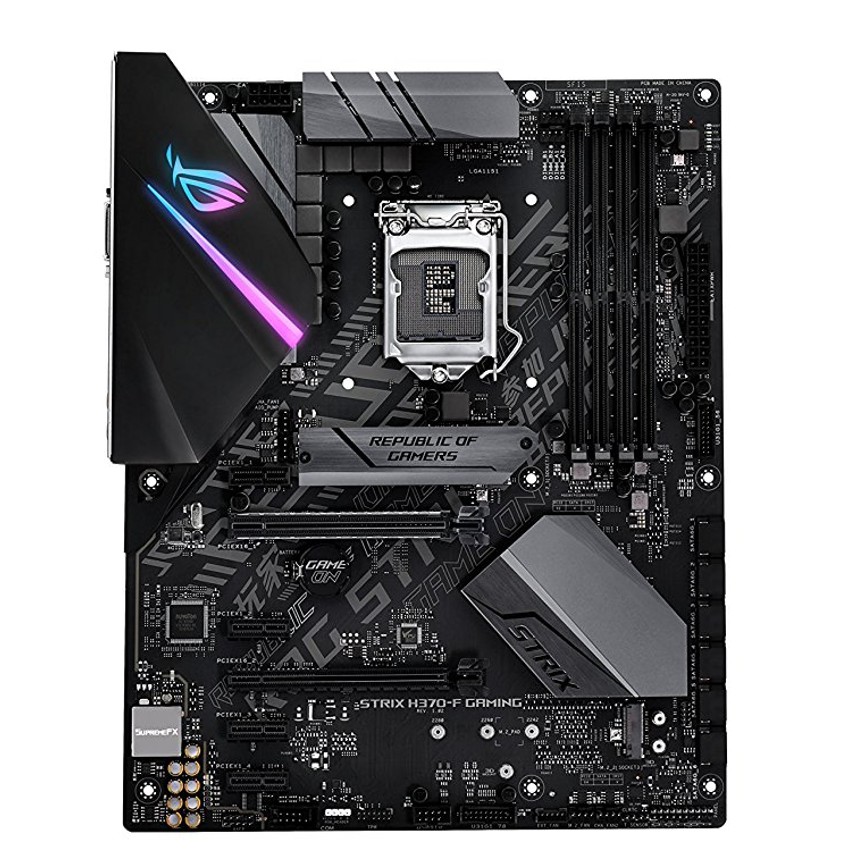 Descripción ASUS ROG STRIX H370-F GAMING. tipos de memoria compatibles: DDR4-SDRAM, Tipo de ranuras de memoria: DIMM, Velocidades de reloj de memoria soportadas: 2133,2400,2600 MHz. Fabricante de procesador: Intel, Socket de procesador: LGA 1151 (Socket H4). Controlador LAN: Intel I219-V, Tipo de interfaz ethernet: Gigabit Ethernet. Componente para: PC, Familia de componentes de tarjeta madre: Intel, Circuito integrado de tarjeta madre: Intel H370. Soporte para proceso paralelo: 2-Way CrossFireX, Adaptador gráfico: HD Graphics, Graphics chipset: Intel