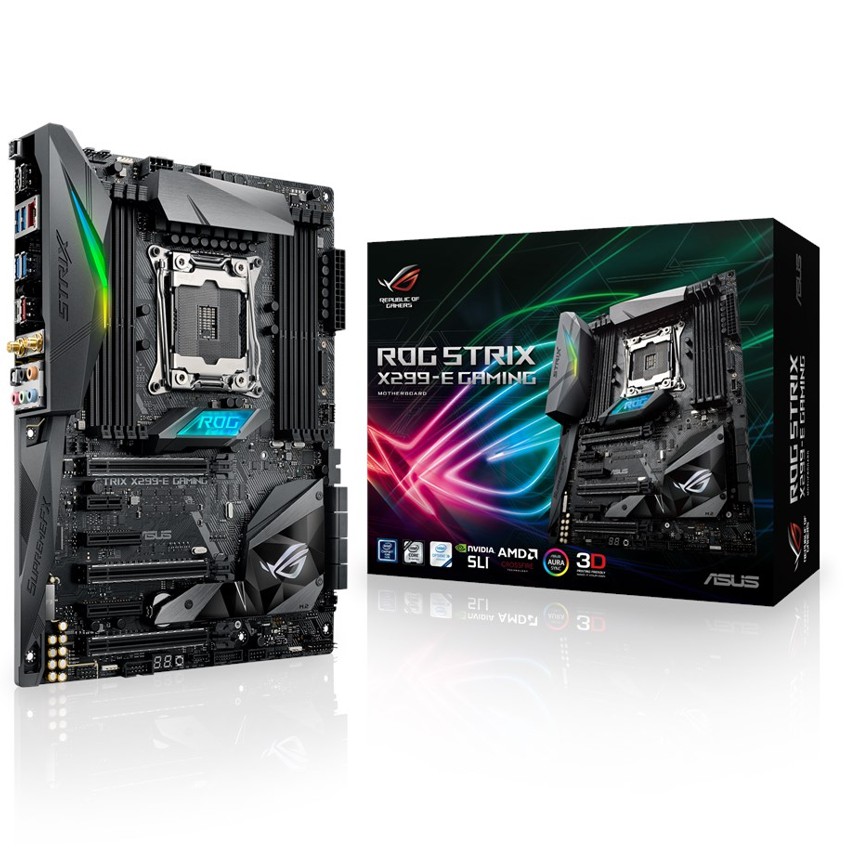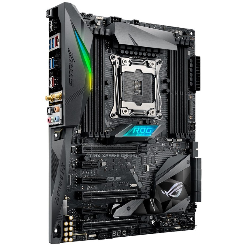 Descripción ASUS ROG STRIX X299-E GAMING. tipos de memoria compatibles: DDR4-SDRAM, Tipo de ranuras de memoria: DIMM, Velocidades de reloj de memoria soportadas: 2133,2400,2666,2800,3200,3300,3333,3400,3466,3600,3733,3866,4000,4133 MHz. Familia de procesador: Intel, Procesador compatible: Core i7, Socket de procesador: LGA 2066. Controlador LAN: Intel I219-V, Wi-Fi estándares: IEEE 802.11a,IEEE 802.11ac,IEEE 802.11b,IEEE 802.11g,IEEE 802.11n. Componente para: PC, Familia de componentes de tarjeta madre: Intel, Circuito integrado de tarjeta madre: Intel X299. Tipos de BIOS: UEFI AMI, BIOS, tamaño de memoria: 128 MB