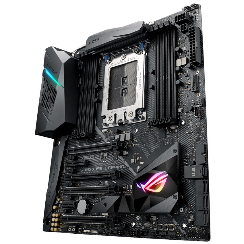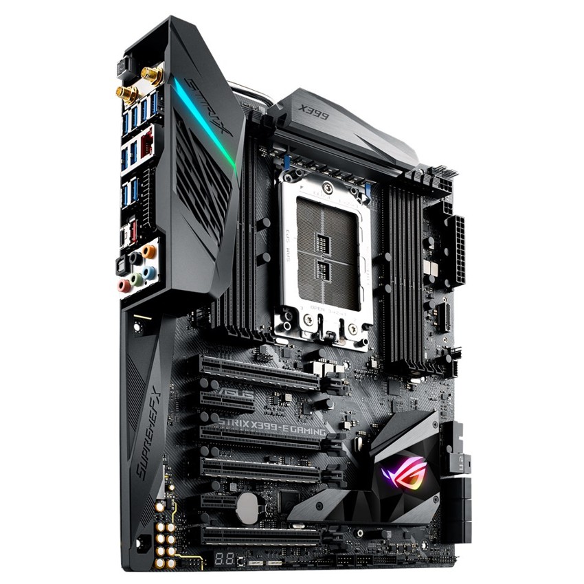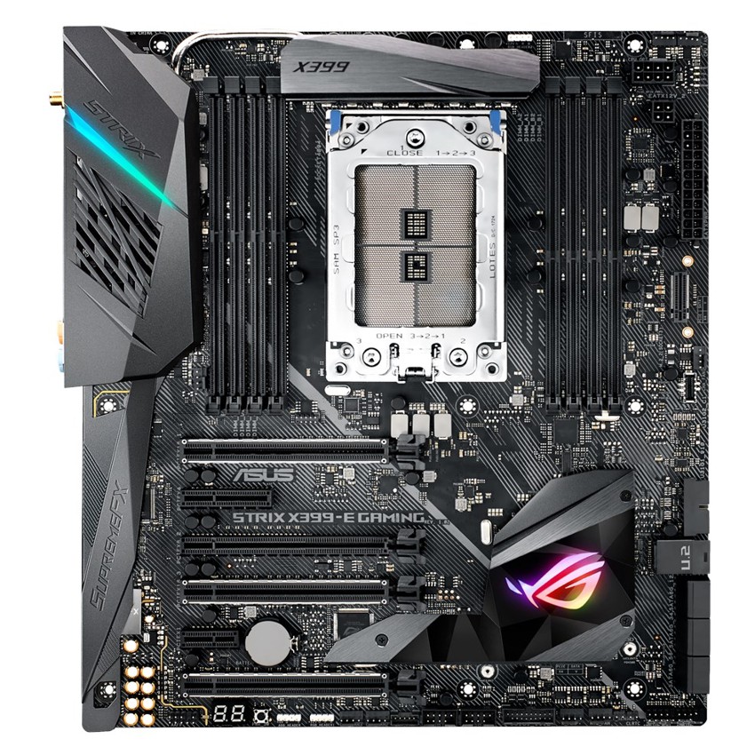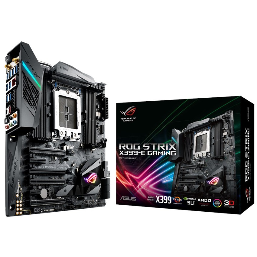Descripción ASUS ROG STRIX X399-E GAMING. tipos de memoria compatibles: DDR4-SDRAM, Tipo de ranuras de memoria: DIMM, Velocidades de reloj de memoria soportadas: 2133,2400,2666,2800,3200,3600 MHz. Familia de procesador: AMD, Procesador compatible: Ryzen. Controlador LAN: Intel I211-AT, Tipo de interfaz ethernet: Gigabit Ethernet, Wi-Fi estándares: IEEE 802.11a,IEEE 802.11ac,IEEE 802.11b,IEEE 802.11g,IEEE 802.11n. Componente para: PC, Familia de componentes de tarjeta madre: AMD, Circuito integrado de tarjeta madre: AMD X399. Soporte para proceso paralelo: 2-Way CrossFireX,2-Way SLI,3-Way CrossFireX,3-Way SLI