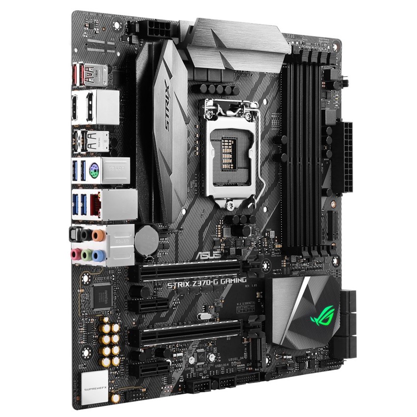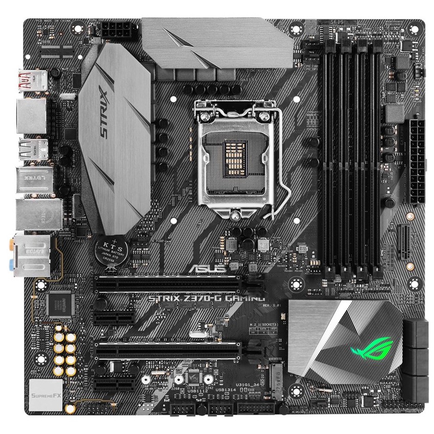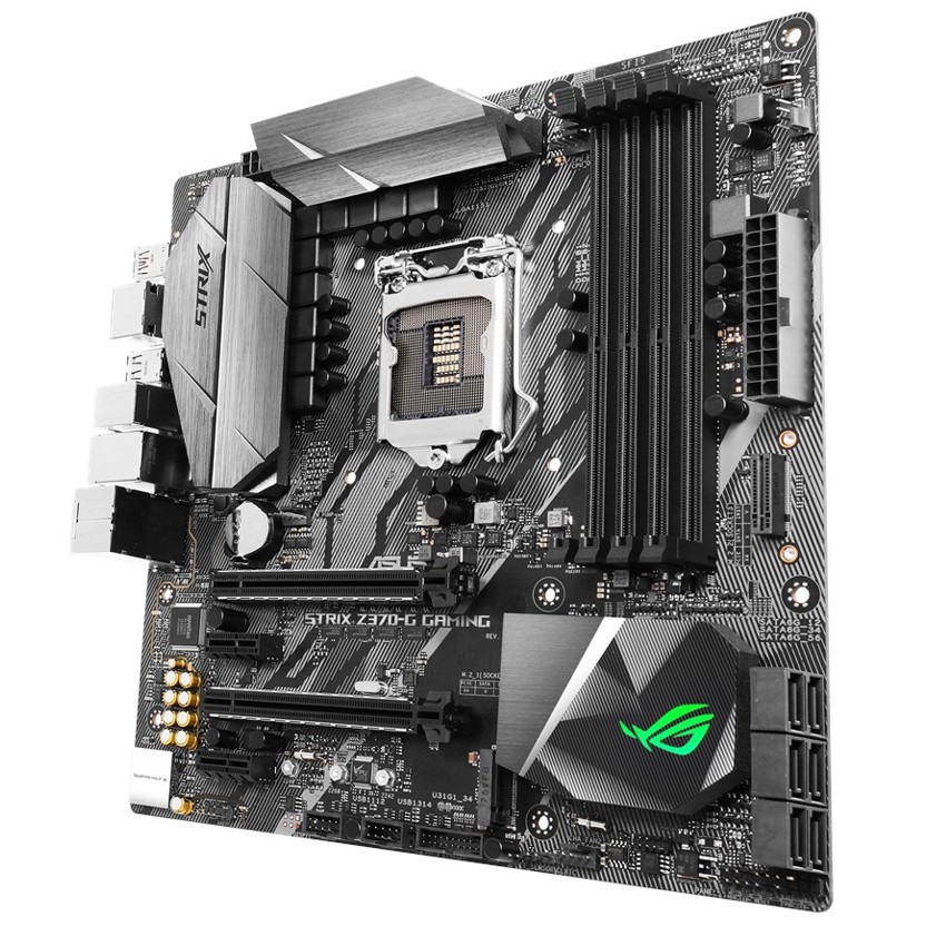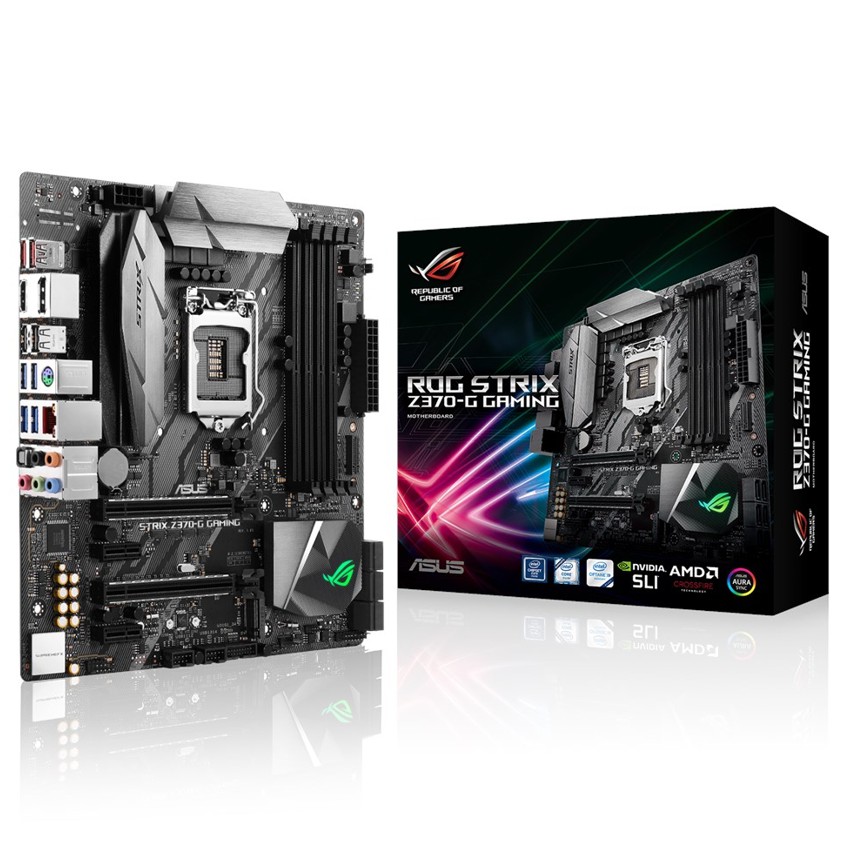 Descripción ASUS ROG STRIX Z370-G GAMING. tipos de memoria compatibles: DDR4-SDRAM, Tipo de ranuras de memoria: DIMM, Velocidades de reloj de memoria soportadas: 2133,4000 MHz. Familia de procesador: Intel, Procesador compatible: Core i3,Core i5,Core i7, Socket de procesador: LGA 1151 (Socket H4). Interfaces de disco de almacenamiento soportados: M.2, Serial ATA III. Controlador LAN: Intel I219-V, Tipo de interfaz ethernet: Gigabit Ethernet, Wi-Fi estándares: IEEE 802.11a,IEEE 802.11ac,IEEE 802.11b,IEEE 802.11g,IEEE 802.11n. Componente para: PC, Familia de componentes de tarjeta madre: Intel, Tarjeta madre, factor de forma: microATX