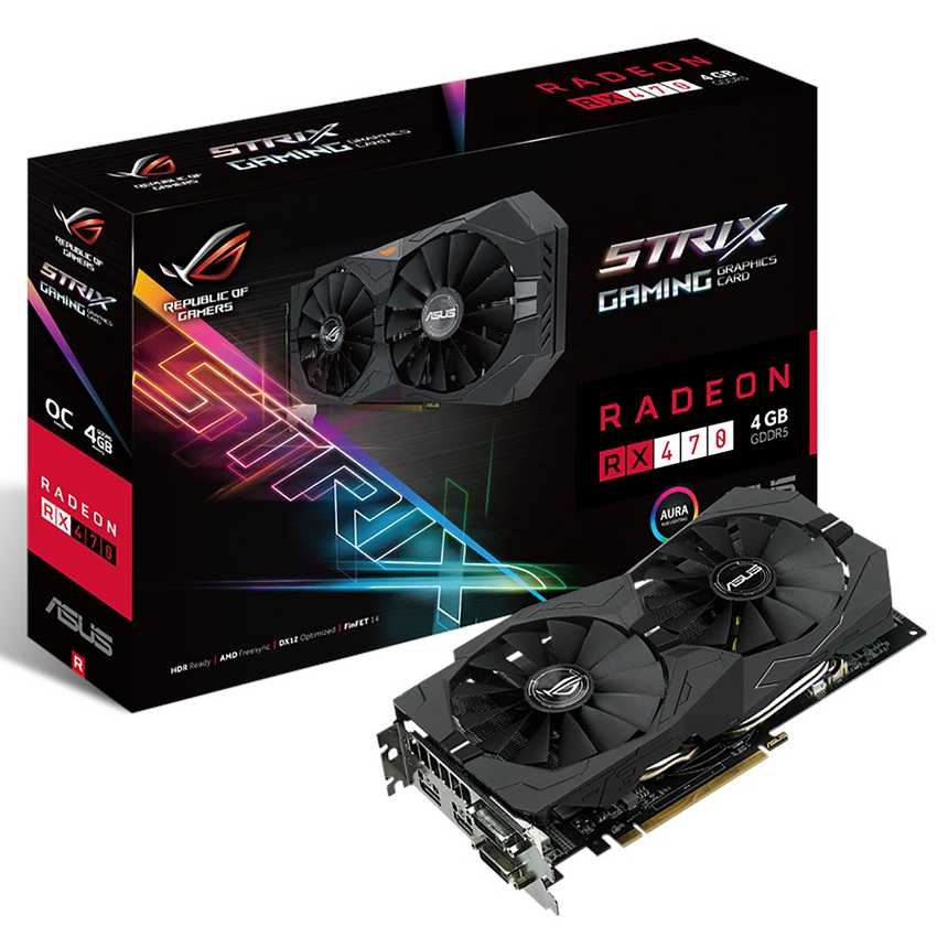 Descripción ASUS ROG STRIX RX470-O4G-GAMING. Familia de procesadores de gráficos: AMD, Procesador gráfico: Radeon RX 470, Máxima resolución: 5120 x 2880 Pixeles. Gráficos discretos memoria del adaptador: 4 GB, Tipo de memoria de adaptador gráfico: GDDR5, Ancho de datos: 256 bit. Tipo de interfaz: PCI Express 3.0, Versión HDMI: 2.0. Versión DirectX: 12.0, Versión OpenGL: 4.5. Tipo de enfriamiento: Activo, Color del producto: Negro
