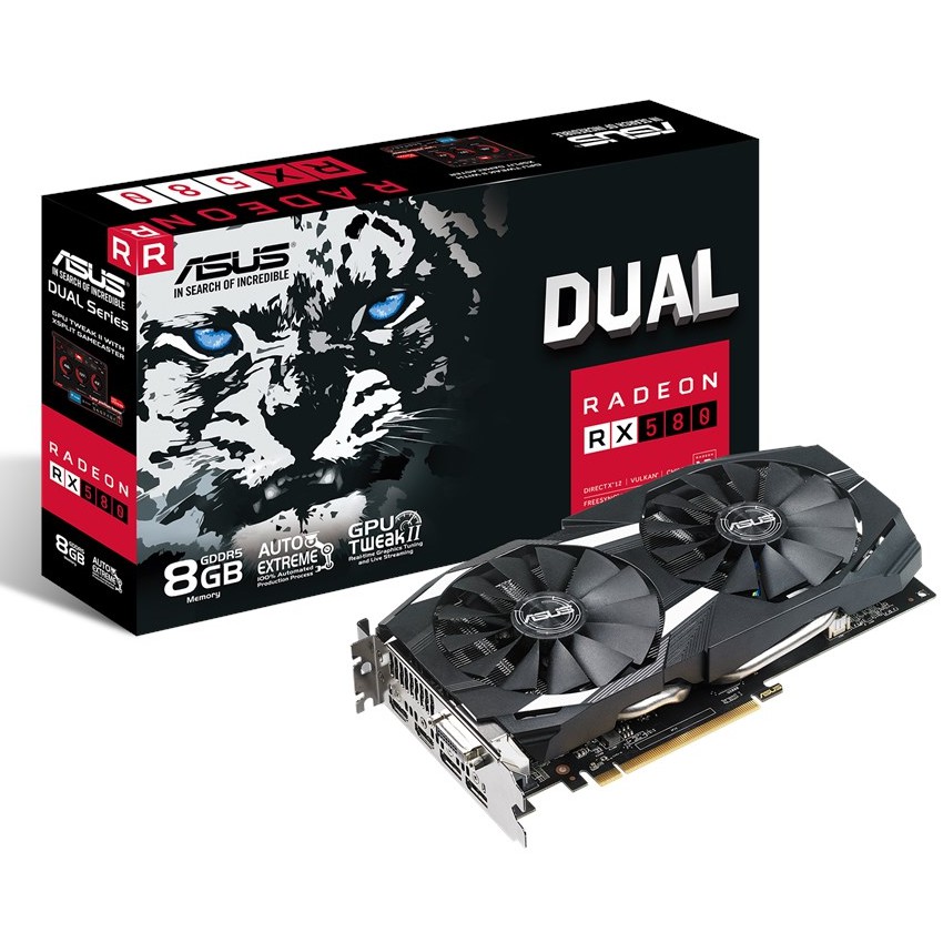 Descripción Serie ASUS Dual Radeon RX 580 con 8 GB GDDR5 para la mejor experiencia de eSports y gaming en 4K