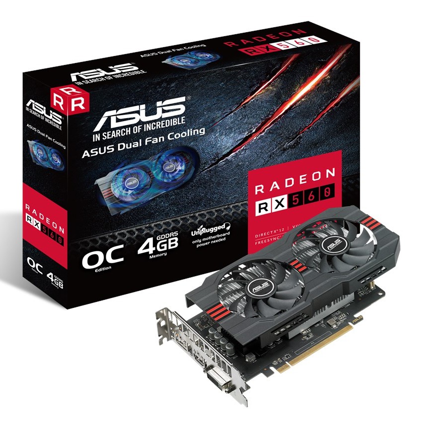 Descripción ASUS RX560-O4G-EVO. Familia de procesadores de gráficos: AMD, Procesador gráfico: Radeon RX 560, Máxima resolución: 5120 x 2880 Pixeles. Gráficos discretos memoria del adaptador: 4 GB, Tipo de memoria de adaptador gráfico: GDDR5, Ancho de datos: 128 bit. Tipo de enfriamiento: Activo, Número de ventiladores: 2 Ventilador(es), Color del producto: Negro, Rojo. Profundidad: 22 mm, Altura: 39 mm, Ancho: 115 mm