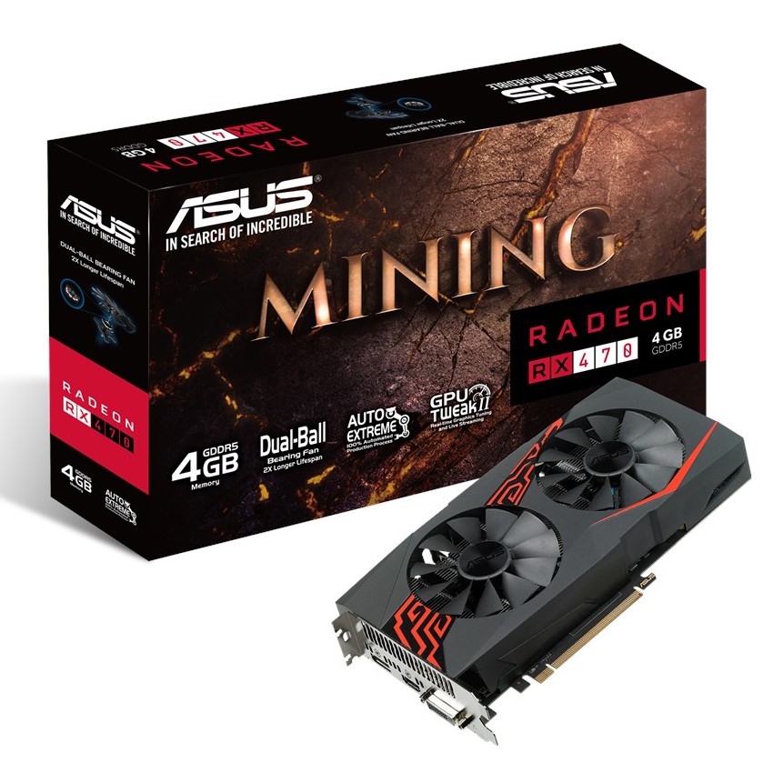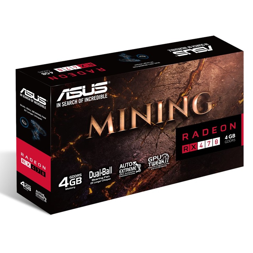 ASUS Mining RX 470 está diseñada para la minería de criptomonedas con componentes de alta eficiencia que proporcionan la máxima producción a un coste mínimo.