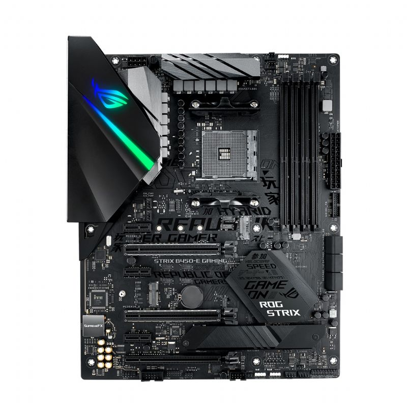 Descripción ASUS ROG STRIX B450-E GAMING. Fabricante de procesador: AMD, Socket de procesador: Zócalo AM4, Procesador compatible: AMD Ryzen. tipos de memoria compatibles: DDR4-SDRAM, Tipo de ranuras de memoria: DIMM, Velocidades de reloj de memoria soportadas: 2133,2400,2666,2800,3000,3200,3466,3533 MHz. Niveles RAID: 0, 1, 10. Soporte para proceso paralelo: 3-Way CrossFireX, Máxima resolución: 4096 x 2160 Pixeles. Versión HDMI: 2.0b