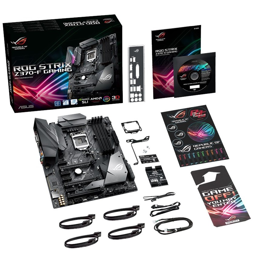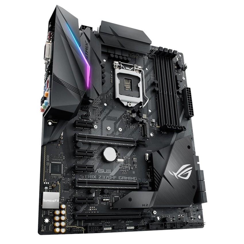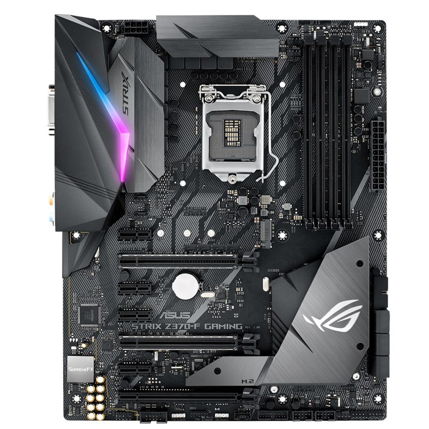 Descripción ASUS ROG STRIX Z370-F GAMING. tipos de memoria compatibles: DDR4-SDRAM, Tipo de ranuras de memoria: DIMM, Velocidades de reloj de memoria soportadas: 2133,4000 MHz. Familia de procesador: Intel, Procesador compatible: Core i3,Core i5,Core i7, Socket de procesador: LGA 1151 (Socket H4). Interfaces de disco de almacenamiento soportados: M.2, Serial ATA III. Controlador LAN: Intel I219-V, Tipo de interfaz ethernet: Gigabit Ethernet. Componente para: PC, Familia de componentes de tarjeta madre: Intel, Tarjeta madre, factor de forma: ATX