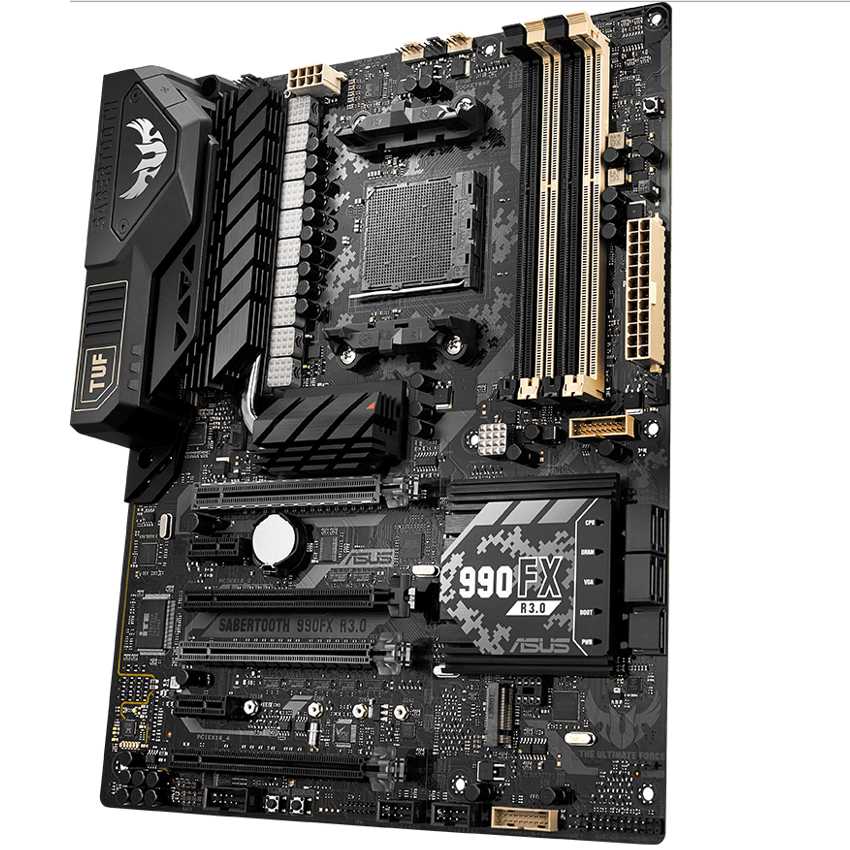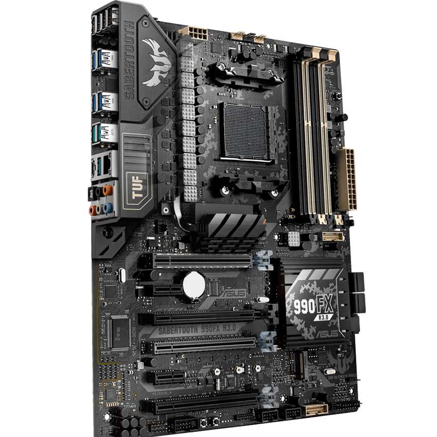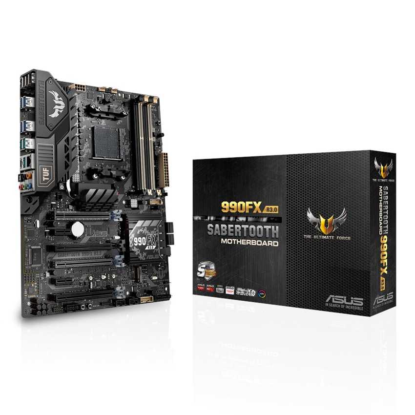 Descripción ASUS TUF SABERTOOTH 990FX R3.0. tipos de memoria compatibles: DDR3-SDRAM, Tipo de ranuras de memoria: DIMM, Canales de memoria: Dual. Familia de procesador: AMD, Procesador compatible: Athlon, Phenom, Sempron, Socket de procesador: Socket AM3+. Interfaces de disco de almacenamiento soportados: M.2, Serial ATA III. Controlador LAN: Intel I211-AT, Tipo de interfaz ethernet: Gigabit Ethernet. Componente para: PC, Familia de componentes de tarjeta madre: AMD, Circuito integrado de tarjeta madre: AMD 990FX