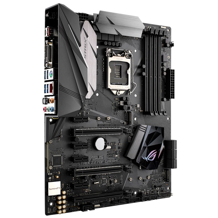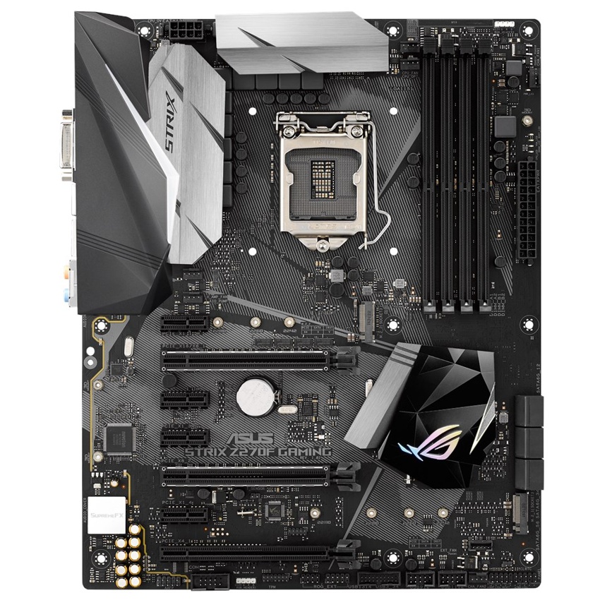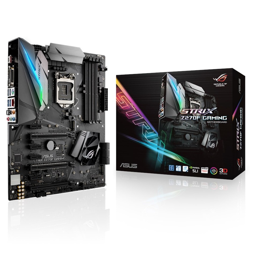Descripción ASUS STRIX Z270F GAMING. tipos de memoria compatibles: DDR4-SDRAM, Tipo de ranuras de memoria: DIMM, Velocidades de reloj de memoria soportadas: 2133,2400,2666,2800,3000,3200,3300,3333,3400,3466,3600,3733,3866 MHz. Familia de procesador: Intel, Procesador compatible: Celeron,Core i3,Core i5,Core i7,Pentium, Socket de procesador: LGA1151. Controlador LAN: Intel I219-V. Componente para: PC, Familia de componentes de tarjeta madre: Intel, Circuito integrado de tarjeta madre: Intel Z270. Graphics chipset: Intel