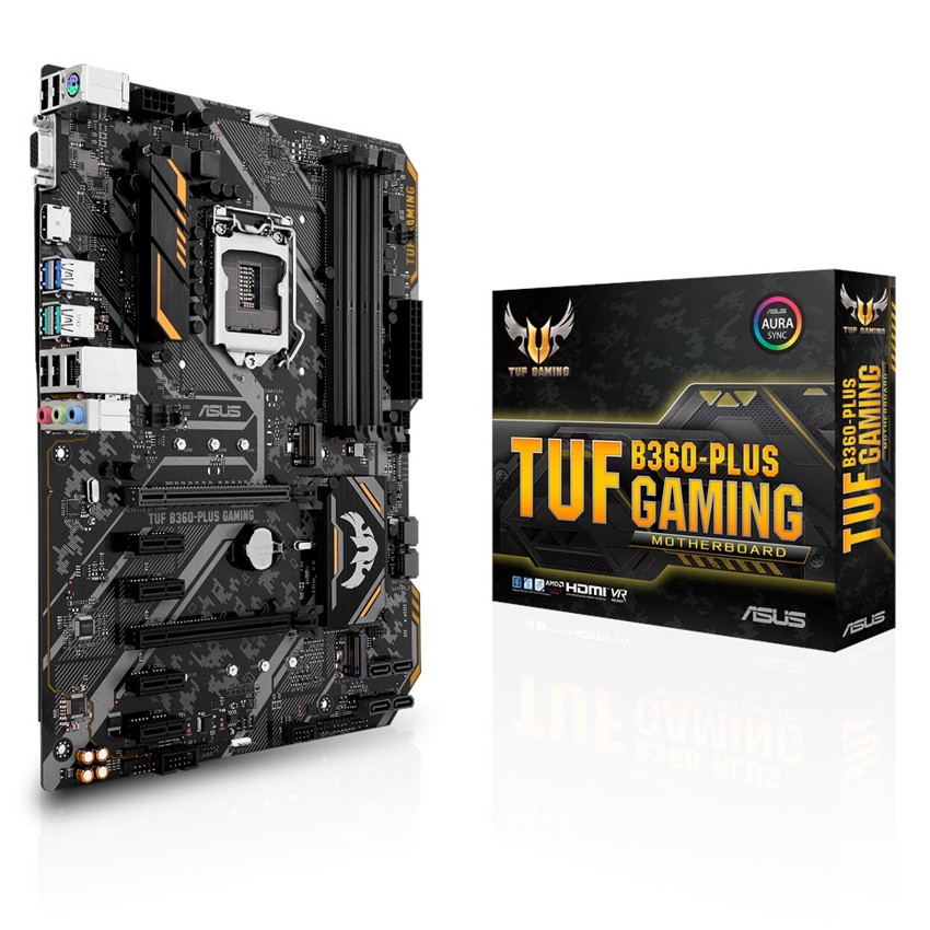 Descripción Placa base para juegos Intel B360 ATX con iluminación LED RGB Aura Sync, compatibilidad con DDR4 2666MHz, 32.2Mb M.2, memoria Intel Optane y USB 3.1 Gen 2. - Detección de temperatura GPU y Fan Xpert 2+:strong> Garantiza que cada ventilador logre el mejor equilibrio entre rendimiento y refrigeración - TUF Protection: SafeSlot, ESD Guards, protección sobre voltaje en DDR4, Digi+ VRM, y un panel traserio I/O de acero inoxidable para mayor durabilidad - Componentes de grado militar TUF: TUF LANGuard, TUF Chokes, Capacitores TUF, y MOSFETs TUF MOSFETs para una máxima durabilidad - Aura Sync RGB: Sincroniza la iluminación LED con una amplia gama de equipos/accesorios compatibles