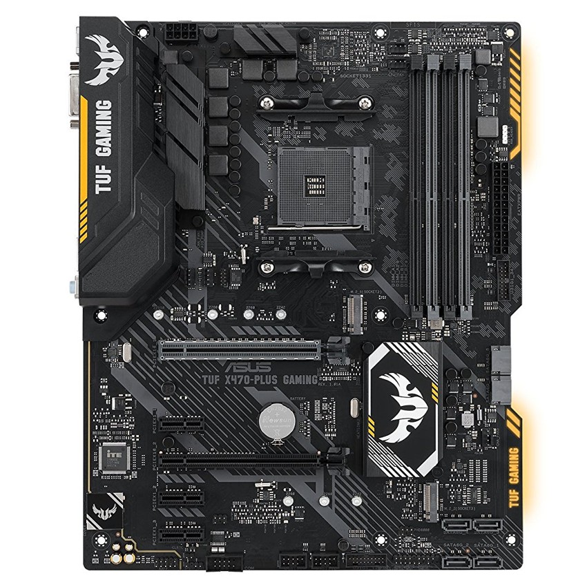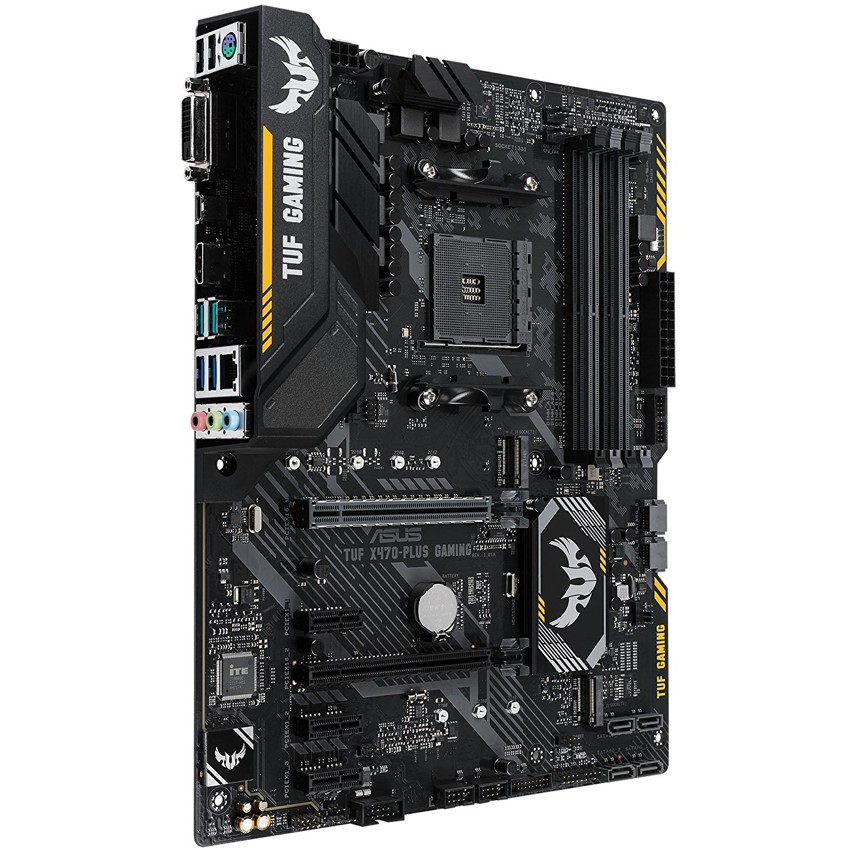 Descripción ASUS TUF X470-PLUS GAMING. tipos de memoria compatibles: DDR4-SDRAM, Tipo de ranuras de memoria: DIMM, Velocidades de reloj de memoria soportadas: 2133,2400,2666,2800,3000,3200 MHz. Fabricante de procesador: AMD, Procesador compatible: AMD A,AMD Athlon X4,AMD Ryzen, Socket de procesador: Socket AM4. Interfaces de disco de almacenamiento soportados: M.2, Serial ATA III. Controlador LAN: Realtek RTL8111H. Componente para: PC, Familia de componentes de tarjeta madre: AMD, Circuito integrado de tarjeta madre: AMD X470