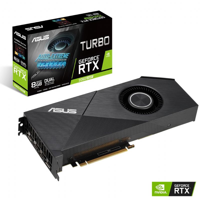 Descripción ASUS Turbo TURBO-RTX2060S-8G-EVO. Familia de procesadores de gráficos: NVIDIA, Procesador gráfico: GeForce RTX 2060 SUPER. Capacidad memoria de adaptador gráfico: 8 GB, Tipo de memoria de adaptador gráfico: GDDR6, Ancho de datos: 256 bit. Máxima resolución: 7680 x 4320 Pixeles. Versión OpenGL: 4.5. Tipo de interfaz: PCI Express 3.0. Tipo de enfriamiento: Activo, Número de ventiladores: 1 Ventilador(es)