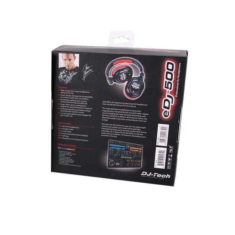 · Auriculares de alta calidad diseñados para DJs · Diseño inteligente que permite a los DJs flexibilidad para controlar el sonido y conseguir una audición de referencia · Almohadillas con acolchado transpirable que mantiene una excelente comodidad durante un uso prolongado · Altavoces de 50 mm con imán de neodimio para una respuesta de frecuencia óptima · Diseño moderno y profesional para un sonido superior · Adaptador 1/4 con adaptador 1/8 · Incluye funda para transporte y software Deckadance LE