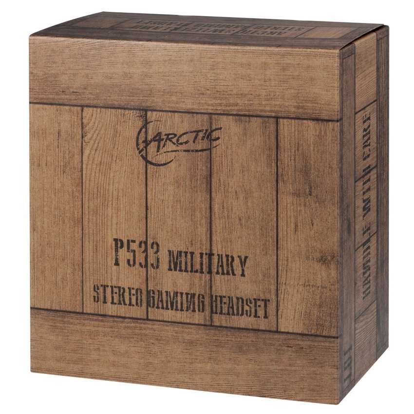 Descripción ARCTIC P533 Military. Utilizar con: PC/Juegos. Tipo de auricular: Binaurale, Estilo de uso: Diadema, Color del producto: Camuflaje. Tecnología de conectividad: Alámbrico, Interfaz del dispositivo: 3.5 mm (1/8 "), Longitud de cable: 1,2 m. Audifonos: Circumaural, Frecuencia de auricular: 20 - 20000 Hz, Obstrucción: 32 ?. Frecuencia de micrófono: 100 - 10000 Hz, Sensibilidad de micrófono: -40 dB