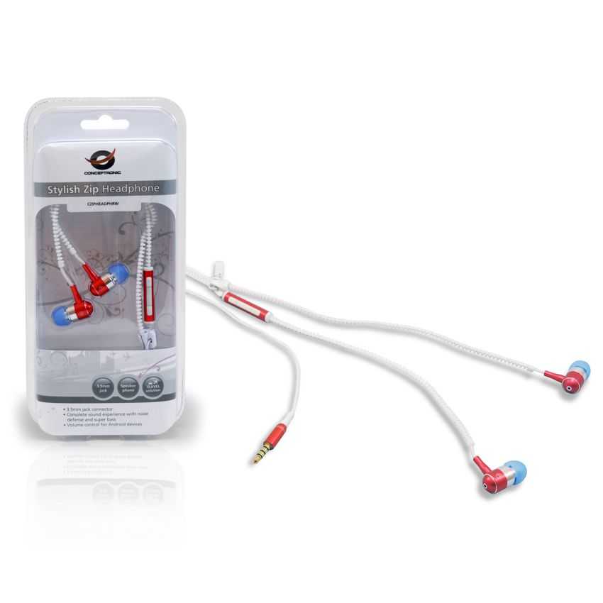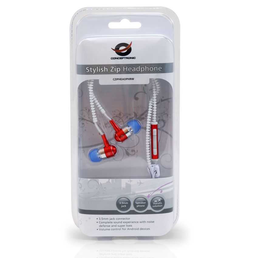 Auriculares Conceptronic Stylish Zip Headphone Rojo y Blanco CZIPHEADPHRW
