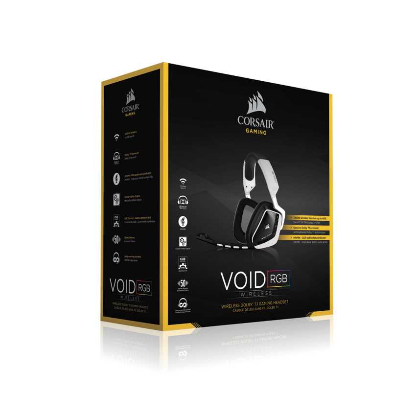 Descripción Corsair VOID Wireless. Utilizar con: PC/Juegos, Canales de salida de audio: 7.1. Tipo de auricular: Binaurale, Estilo de uso: Diadema, Color del producto: Color blanco. Tecnología de conectividad: Inalámbrico, Interfaz del dispositivo: USB, Frecuencia de banda: 2.4. Audifonos: Circumaural, Frecuencia de auricular: 20 - 20000 Hz, Obstrucción: 32 ?. Frecuencia de micrófono: 100 - 10000 Hz, Sensibilidad de micrófono: -38 dB, Micrófono, impedancia de salida: 2,2 ?