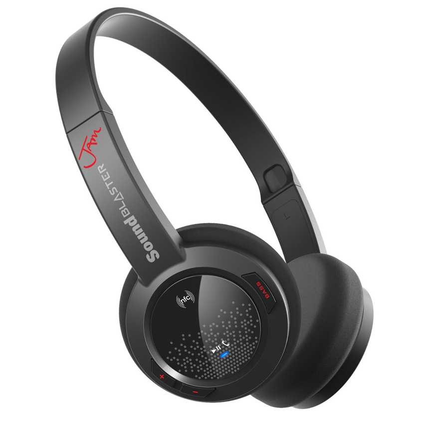 Descripción Creative Labs Sound Blaster JAM. Tipo de auricular: Binaurale, Color del producto: Negro, Estilo de uso: Diadema. Tecnología de conectividad: NFC/Bluetooth. Alcance inalámbrico: 15 m, Versión de Bluetooth: 4.1, Perfiles de Bluetooth: A2DP, AVRCP, HFP. Audifonos: Circumaural, Unidad de disco: 3,2 cm, Tipo de imán: Neodimio. Tecnología de batería: Ión de litio, Capacidad de batería: 200 mAh, Tiempo continuo de reproducción de audio: 12 h