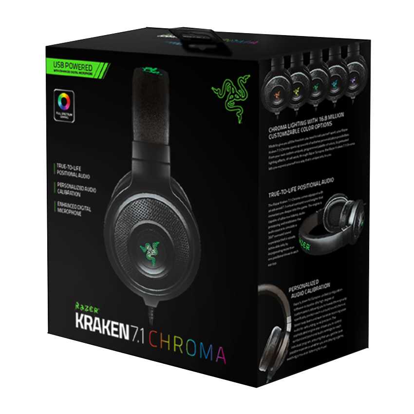 Descripción Obtén la máxima experiencia de juego con sonido envolvente 7.1 con los auriculares USB para juegos Razer Kraken 7.1 Chroma. Estos auriculares adoptan el diseño del Razer Kraken Pro, y ha sido testeado por numerosos jugadores profesionales para determinar la ergonomía óptima para largas sesiones de juego.