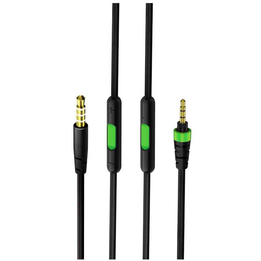 Micrófono en línea extraíble y control remoto para Apple iOS El Razer Kraken Mobile tiene un cable extraíble e incluye un micrófono en línea dedicado y controles multimedia diseñados específicamente para dispositivos iOS. Esto te permite obtener funcionalidad completa mediante el control remoto de 3 botones para aceptar o rechazar llamadas fácilmente, ajustar el volumen o incluso reproducir, hacer pausas o saltarte pistas.