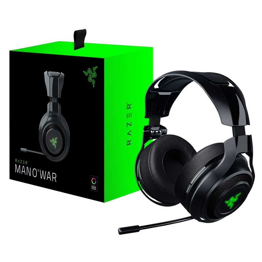 Descripción Razer ManO`war. Audifonos: Circumaural, Estilo de uso: Diadema, Potencia máxima de entrada: 30 mW. Tecnología de conectividad: Inalámbrico, Interfaz del dispositivo: USB, Alcance inalámbrico: 12 m. Autonomía: 20 h. Color del producto: Negro, Control de volumen: Giratorio. Peso: 375 g
