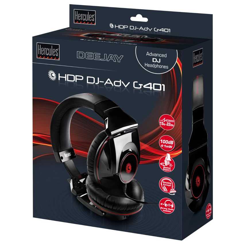Descripción Hercules HDP DJ-Adv G401. Audifonos: Circumaural, Estilo de uso: Diadema, Frecuencia de auricular: 15 - 22000 Hz. Tecnología de conectividad: Alámbrico, Interfaz del dispositivo: 3.5 mm (1/8 "), Longitud de cable: 2 m. Color del producto: Negro. Adaptadores de audio incluidos: 6,3 mm