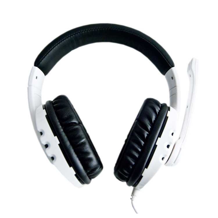 Auriculares gaming en color blanco con micrófono Revolution y diadema ergonómica ajustable. Incluye control de volumen en el cable.