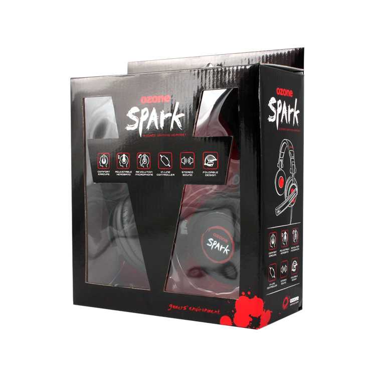 Spark es el principio de los auriculares estéreo de Ozone con una conexión jack de 3.5 mm para un uso versátil.Se pueden usar como auriculares gaming y también para música. Con un rango de sonido de alta calidad, podrá ser tu compañero perfecto para la acción. Las orejeras grandes de cuero hacen de este auricular muy confortable para largas sesiones de juego. El diseño plegable es perfecto para ahorrar espacio y para llevártelos donde quieras.
